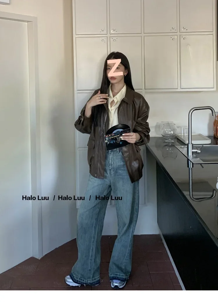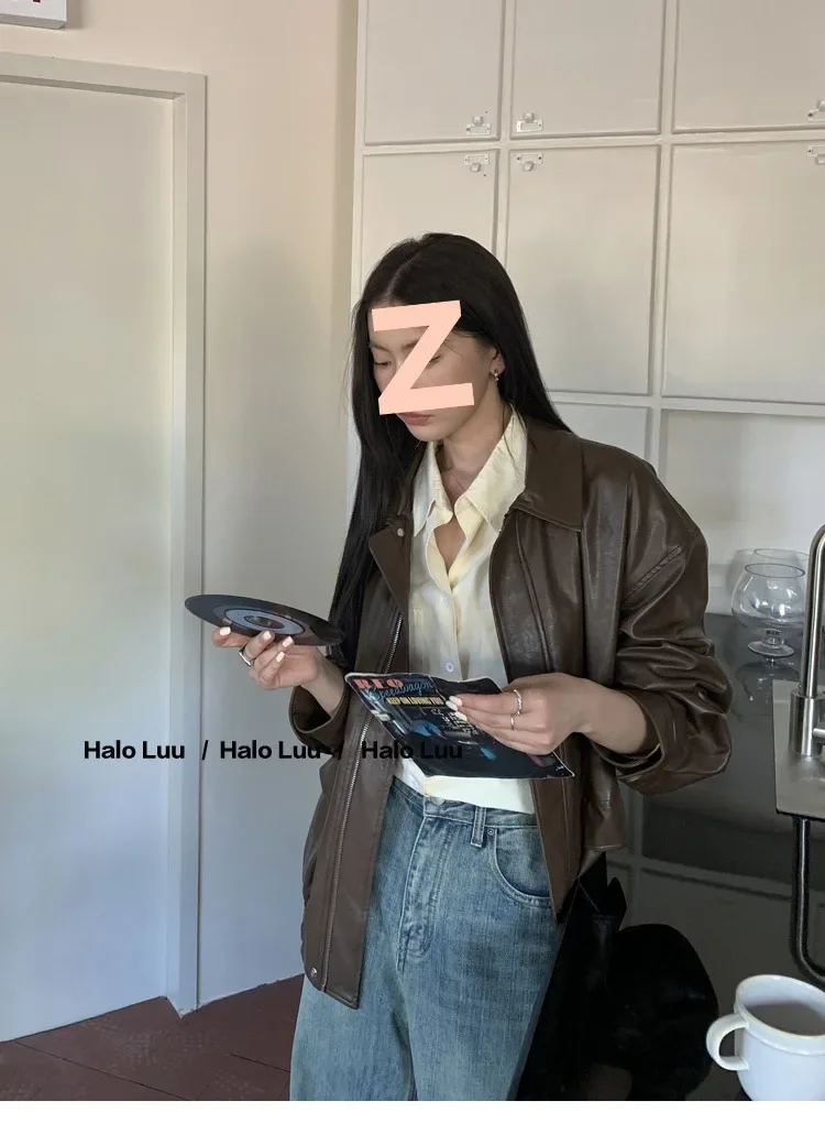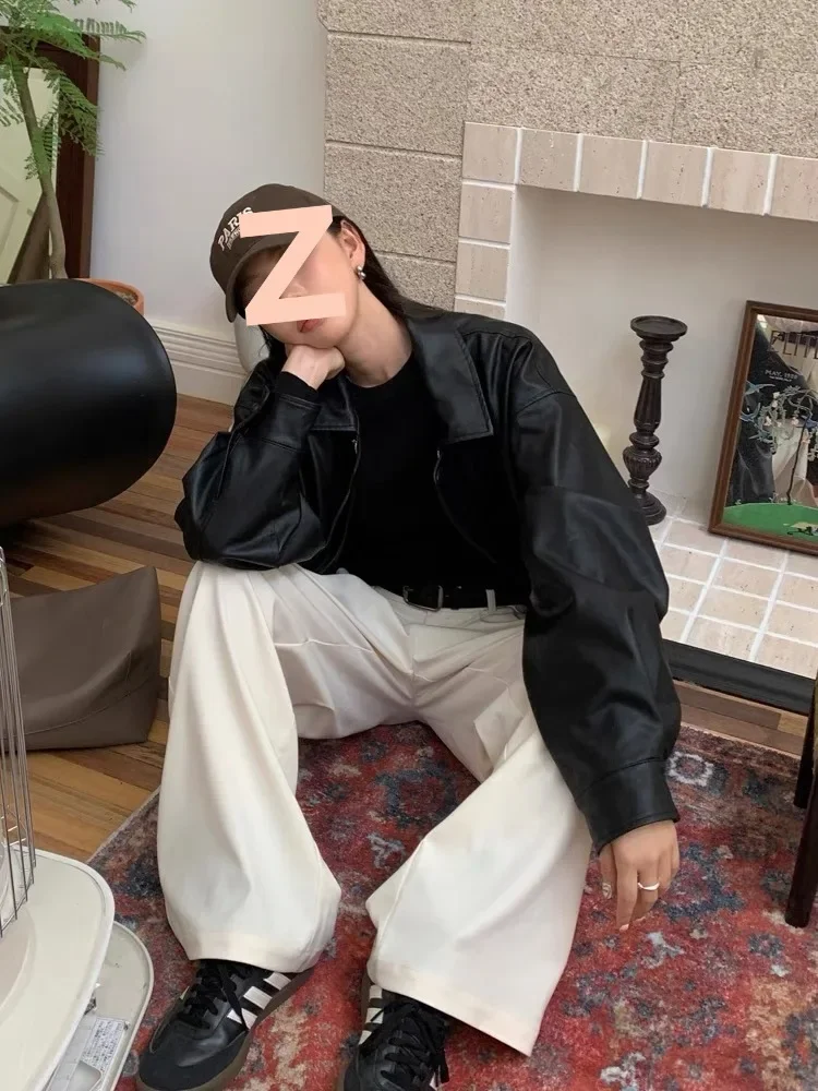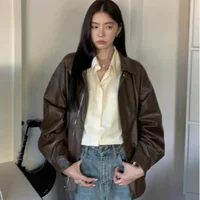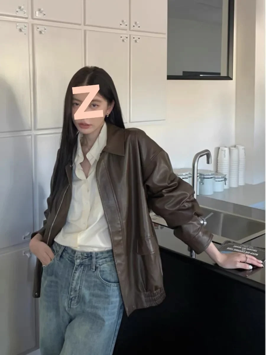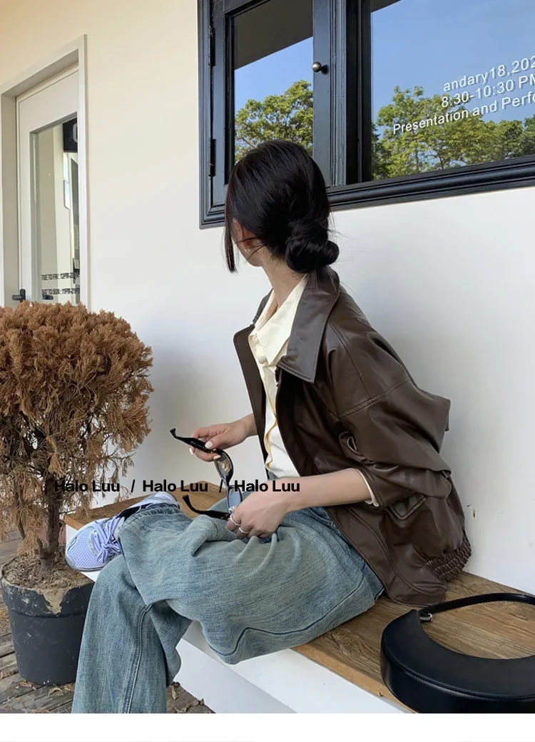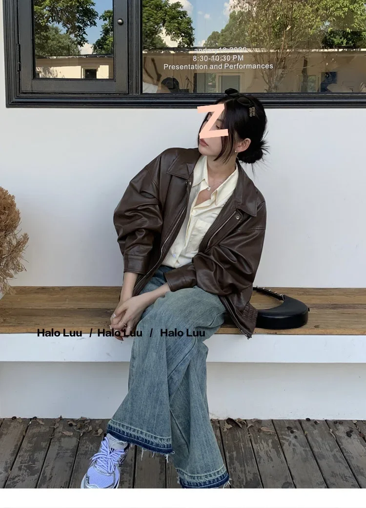 Retro American Motorcycle Leather Jacket Women’s Commute Trendy Top Coat Spring Autumn New Style