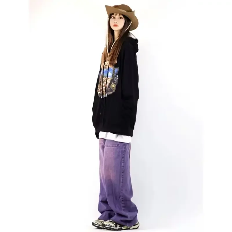 Be the first to review “Retro American Purple Denim Jeans Couple Spring Autumn New Loose Straight Leg Slimming Floor-Length Wide”