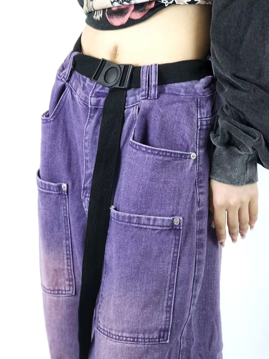 • American Style Retro Design : Embrace the vintage charm with these retro purple jeans, perfect for those who love a touch of American style.