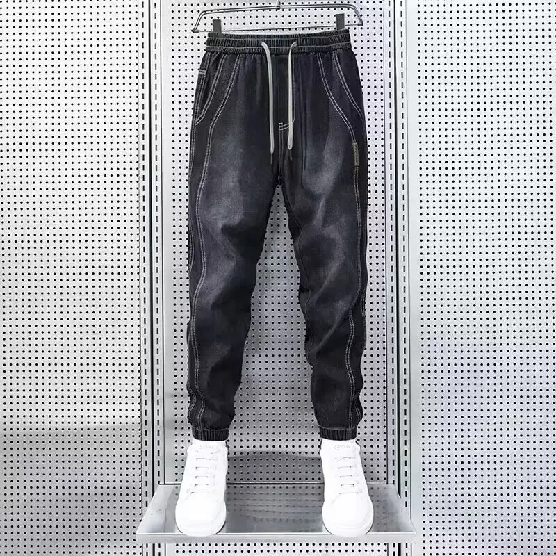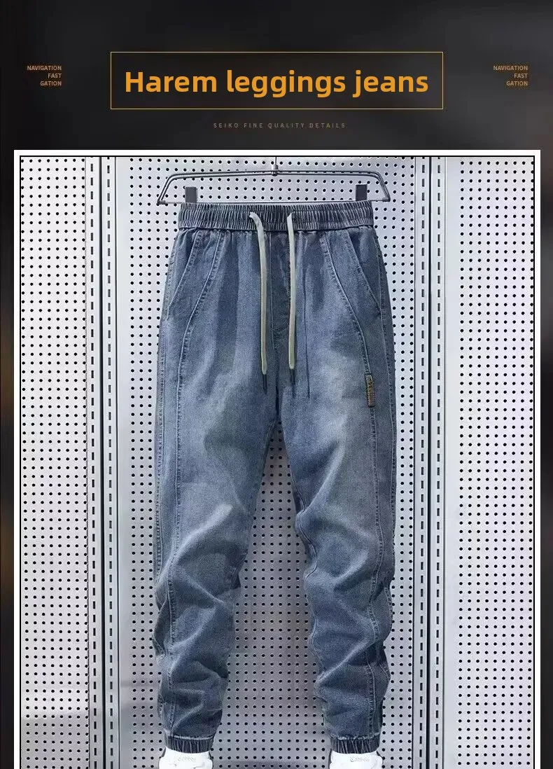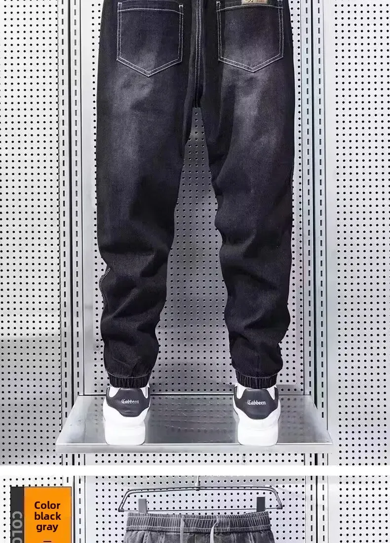 Retro American Style Men's Jeans Spring Autumn Thin Loose Harem Waist Casual Elastic Loose Fit Jeans Comfortable Loose Style