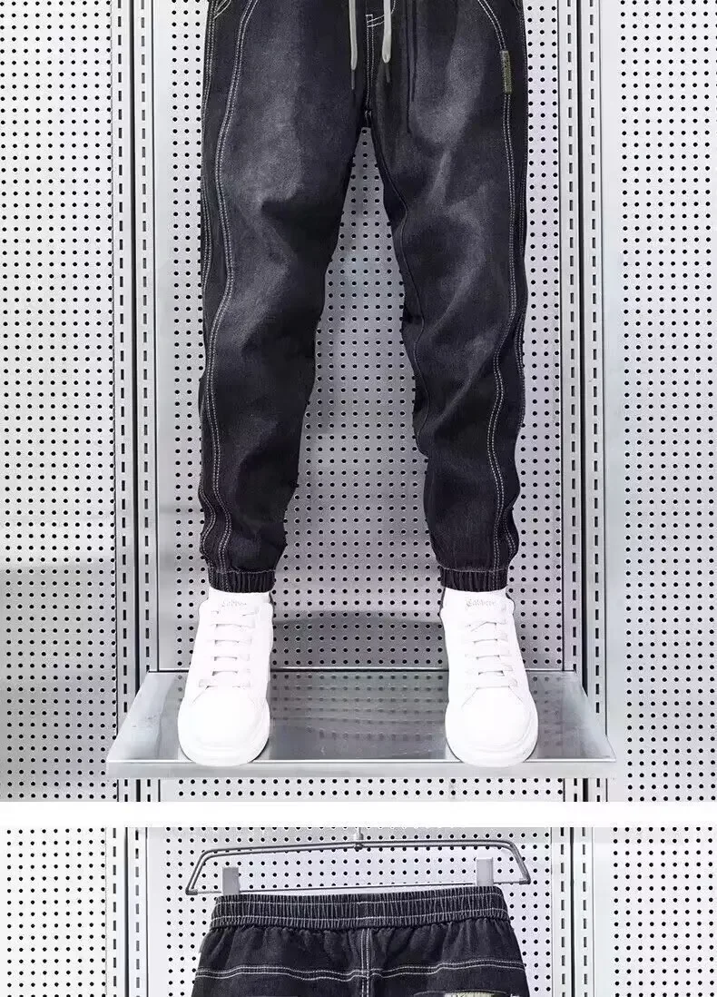 Retro American Style Men’s Jeans Spring Autumn Thin Loose Harem Waist Casual Elastic Loose Fit