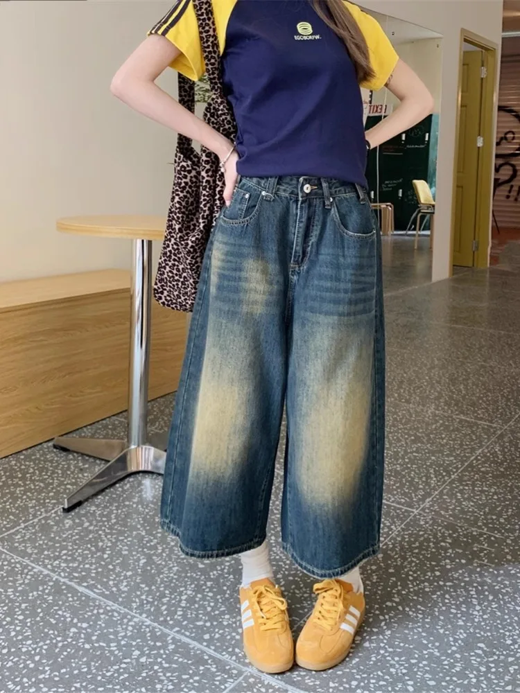 High Waist Straight Leg Denim Blue Pants Women's Loose Wide Leg Jeans Floor-Length Brand Tag Casual Female Clothing
