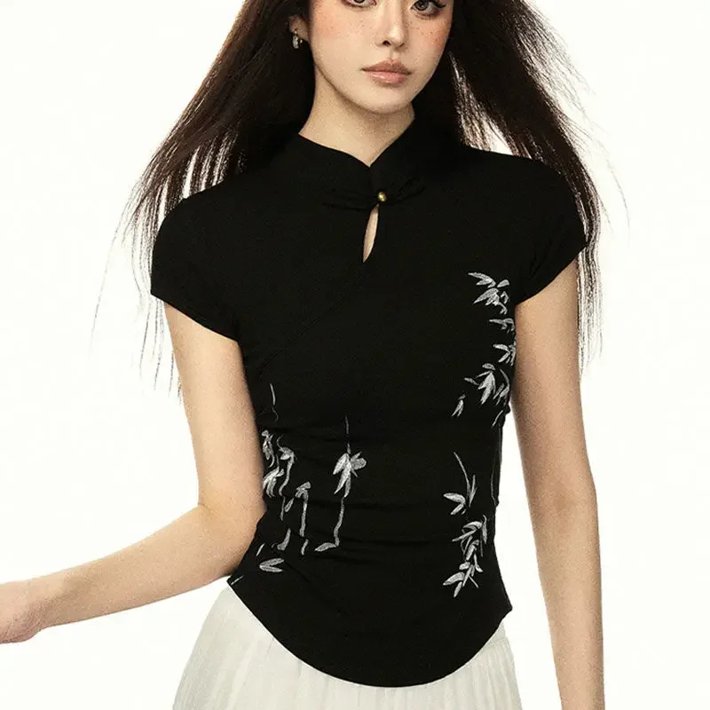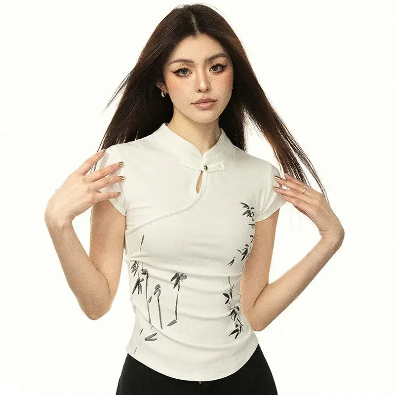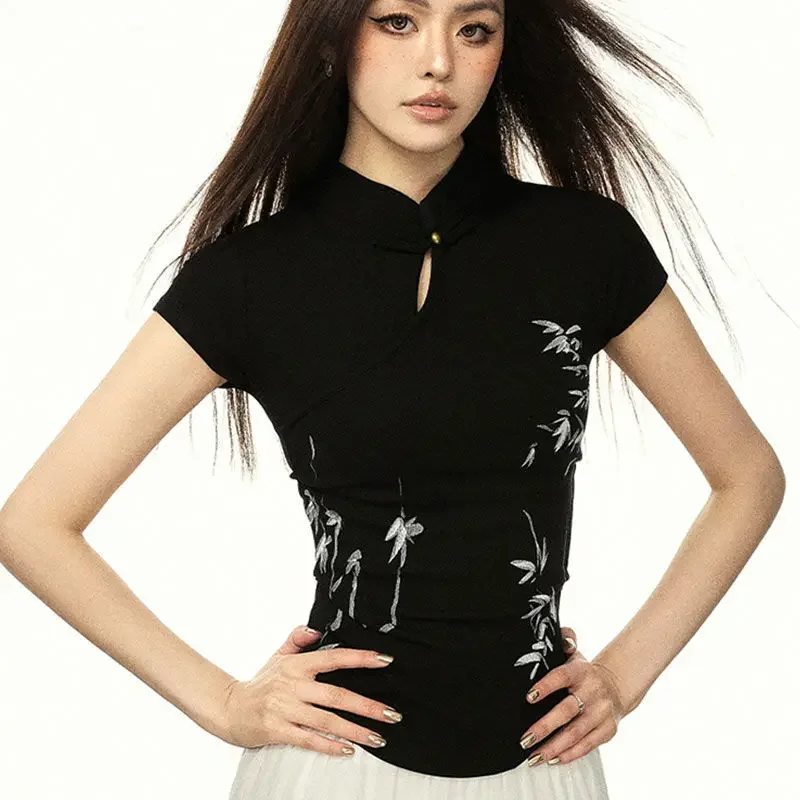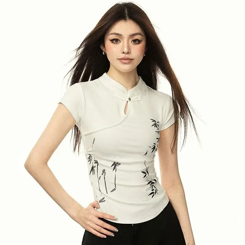 • Vintage Design : This Guofeng Vintage Ink Bamboo Printed T-shirt features a unique vintage design, making it a standout piece in your summer wardrobe.