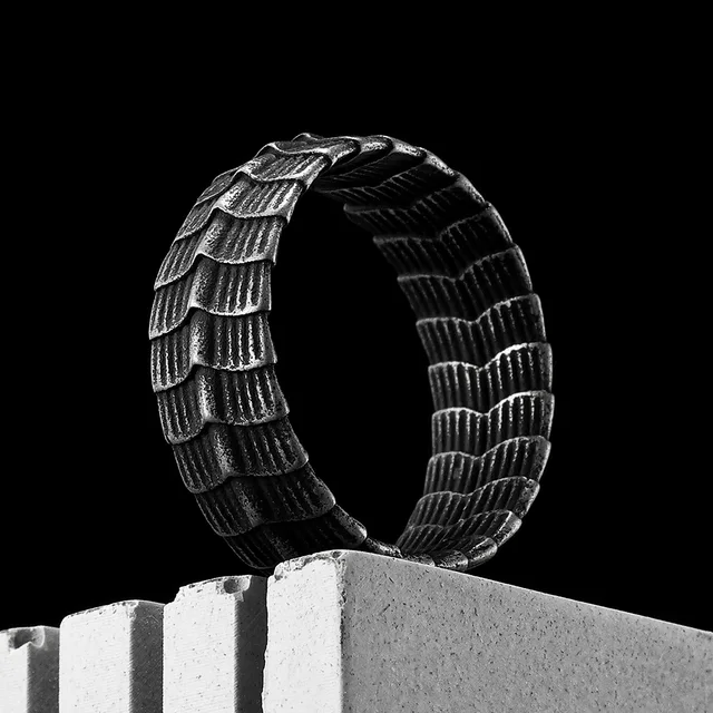 Retro Dragon Scale Men Rings Stainless Steel Gothic Punk Rock Women Jewelry Fashion Accessories Stranger