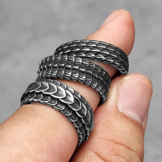 Retro Dragon Scale Men Rings Stainless Steel Gothic Punk Rock Women Jewelry Fashion Accessories Stranger Things Gift Wholesale