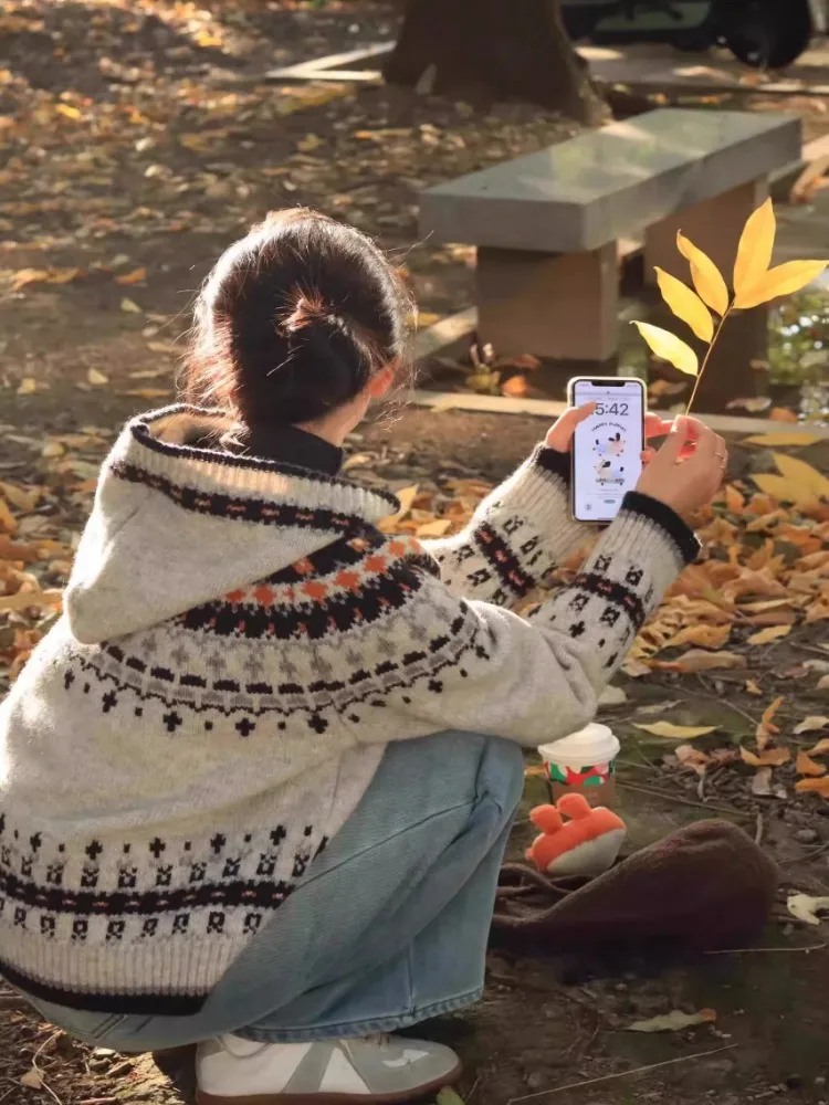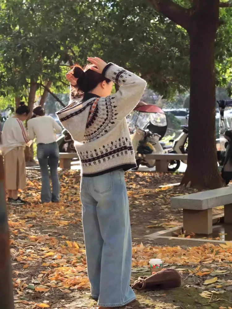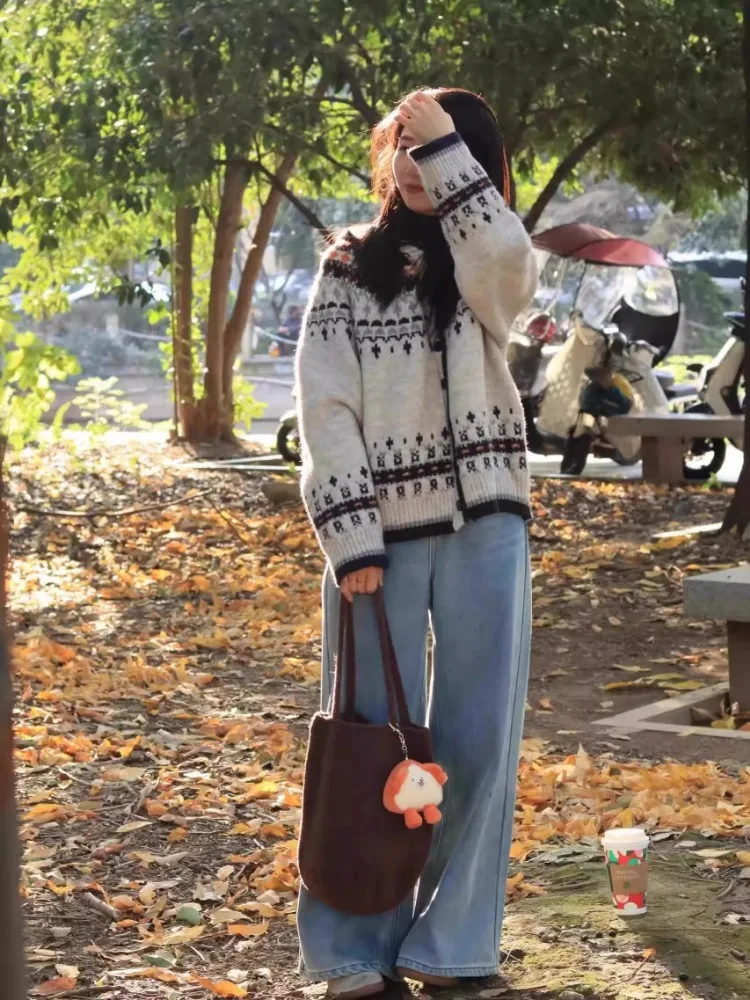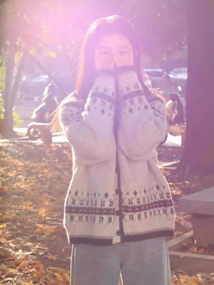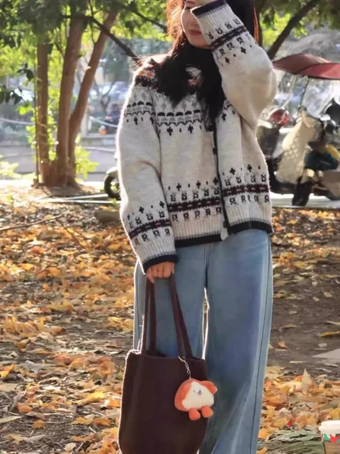 Embrace retro vibes with this stylish Fair Isle knit cardigan, perfect for adding a vintage touch to your spring and autumn wardrobe.