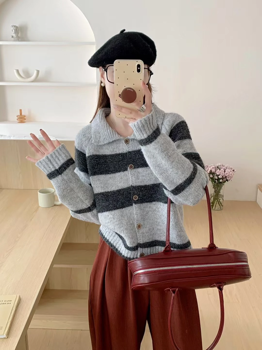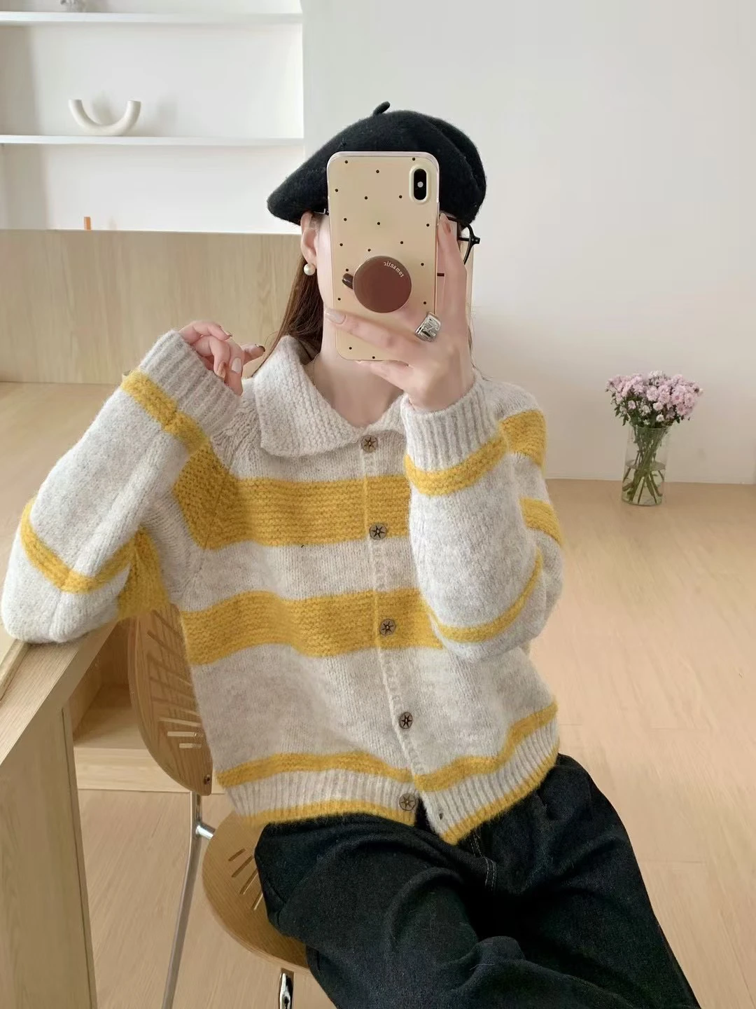 Be the first to review “Retro Korean Striped Loose Women’s Knitwear Cardigan Casual Sle Long Sve Collared Sweater Autumn”