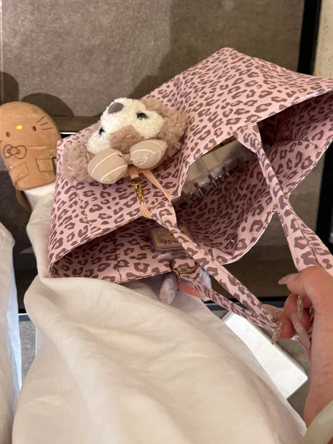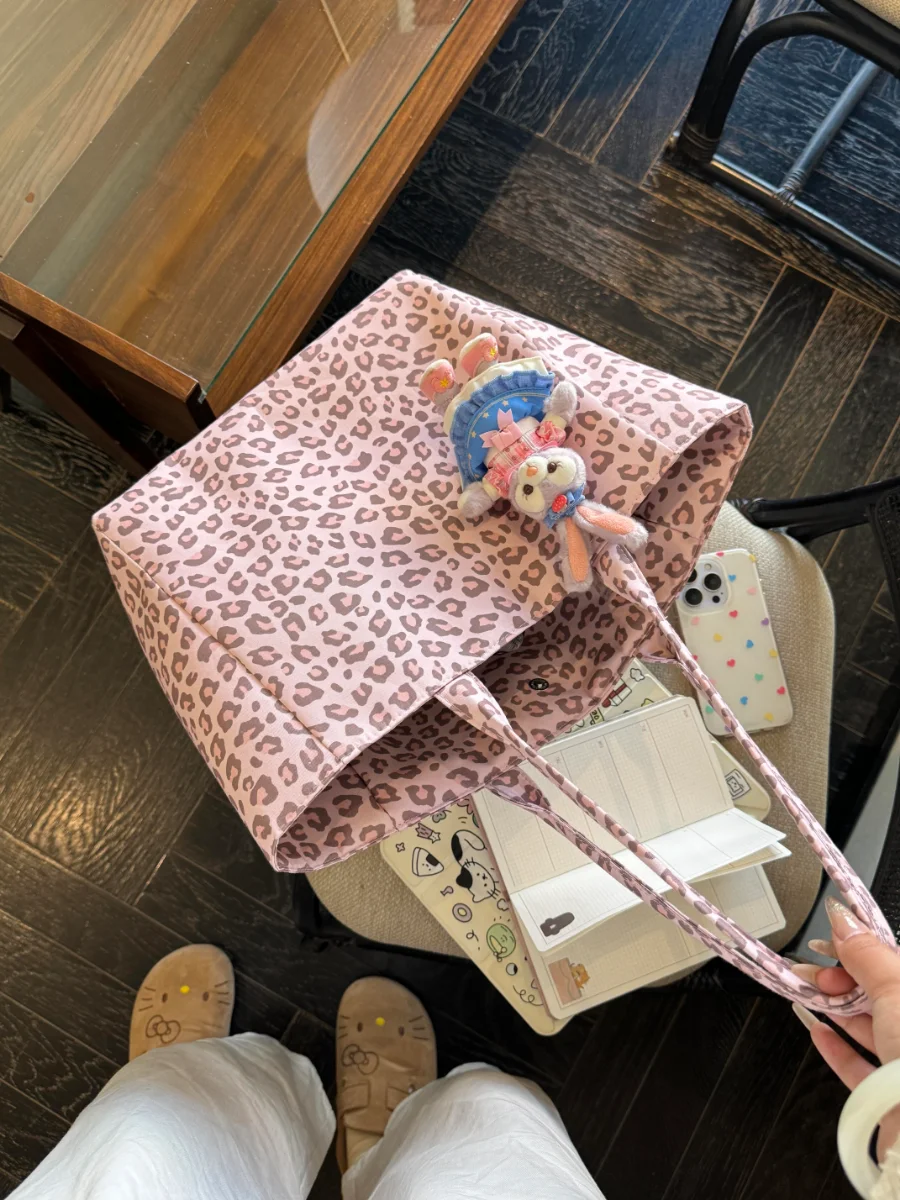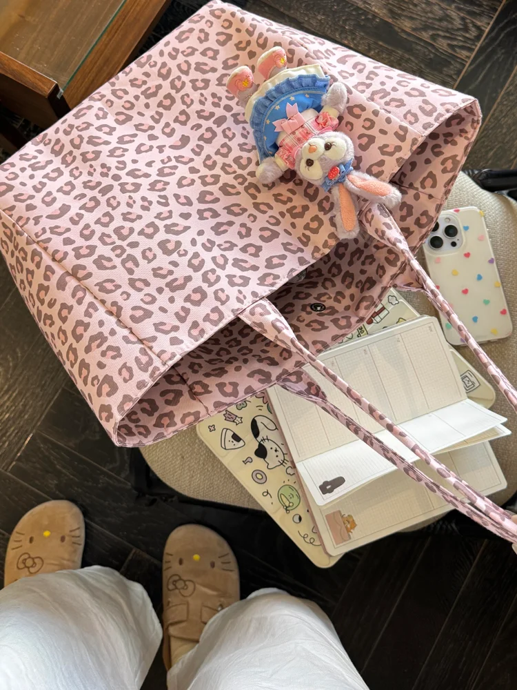 The bag’s pink leopard print adds a touch of elegance and personality to any outfit.