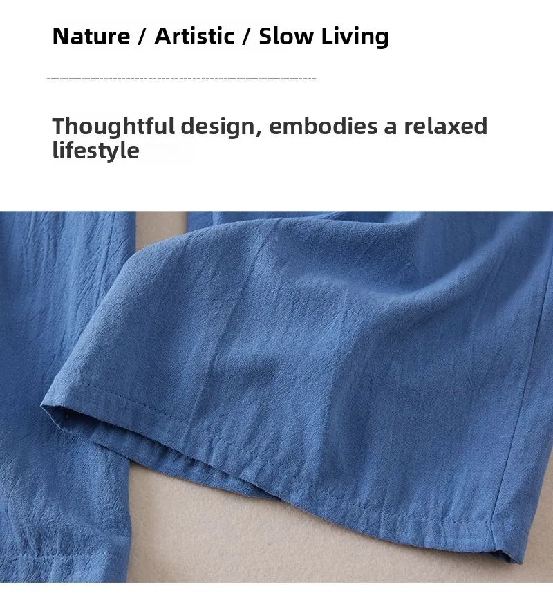 Crafted from pure cotton-linen, these pants offer excellent breathability, ensuring you stay cool and comfortable throughout the day.