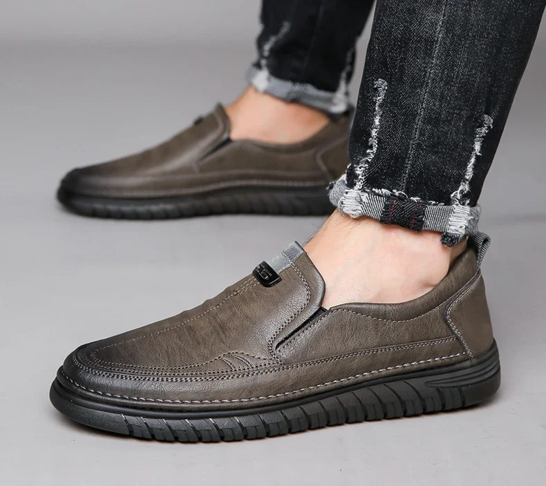 Top-grain Cowhide Men's Shoes, Bean Shoes, Summer Breathable, High-end and Sophisticated Business Casual Leather Shoes