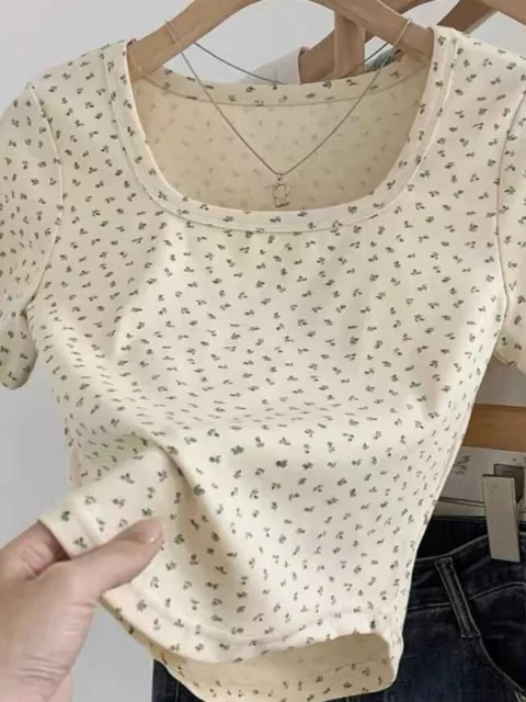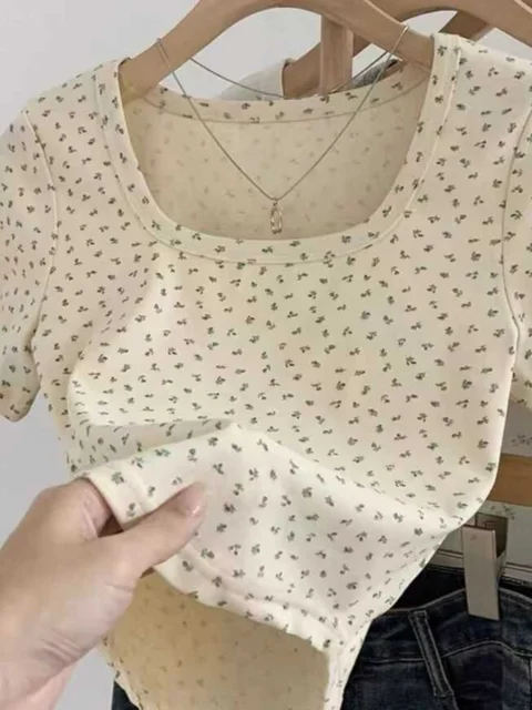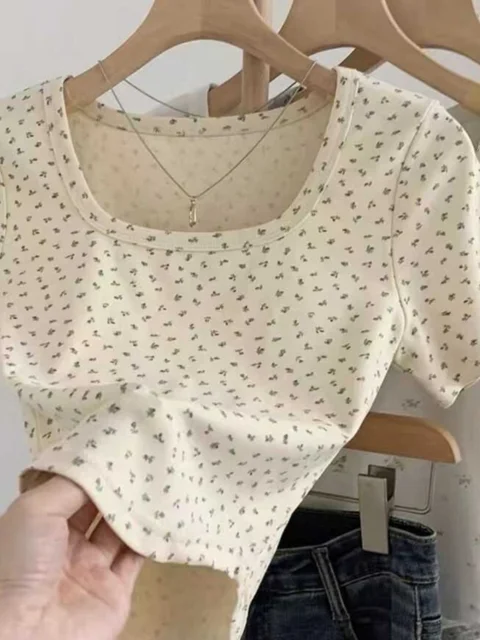 The square collar adds a touch of elegance and sophistication, making this T-shirt suitable for various occasions.