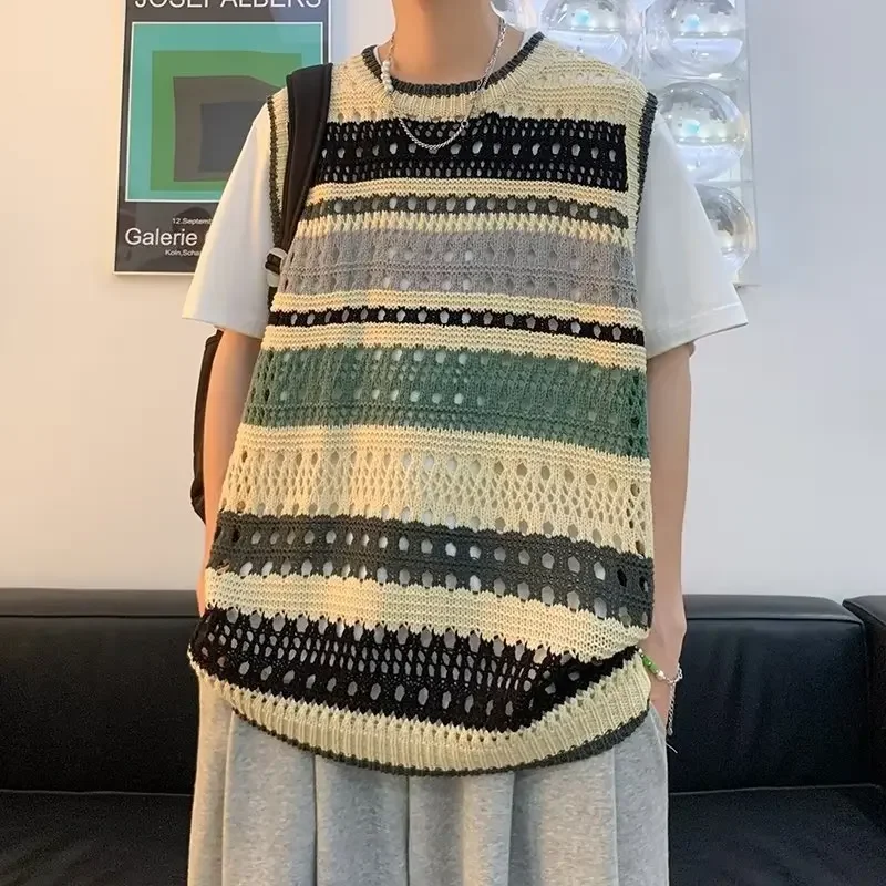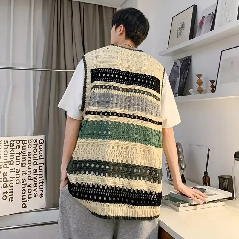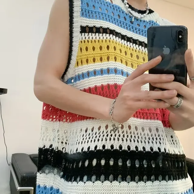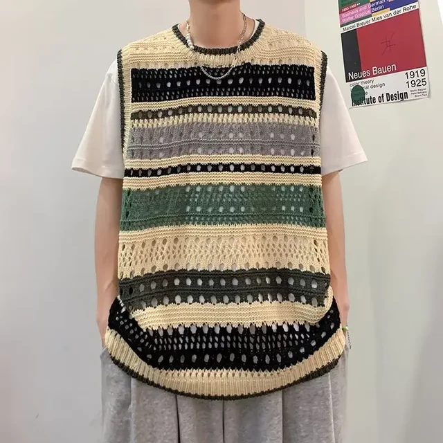 • Summer-Thin Knitwear : This Summer Contrast Color Stripe Retro Vest is a lightweight knitwear perfect for summer, offering a cool and comfortable wear.