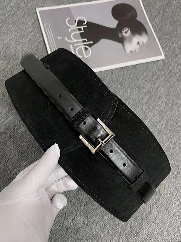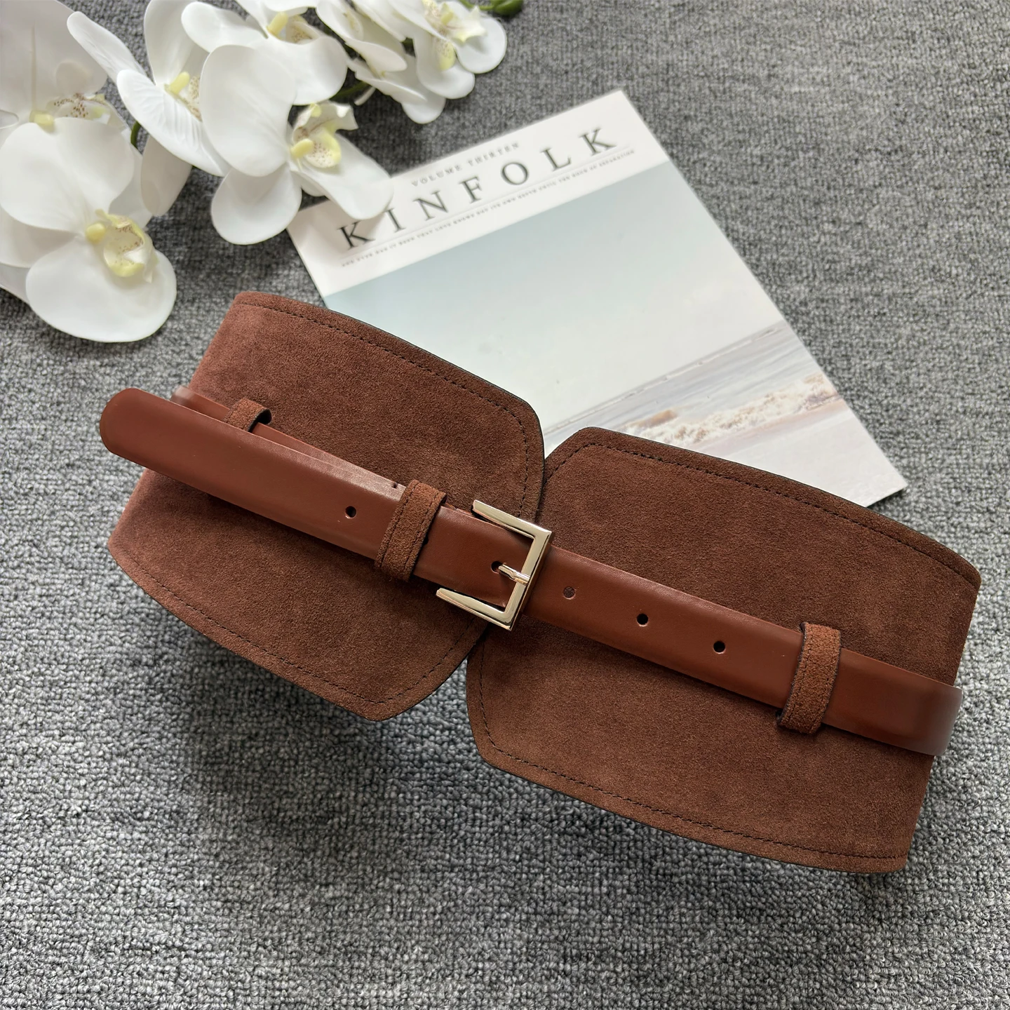 Original price was: 111.25$.83.44$Current price is: 83.44$.Retro suede dual-purpose waistband with contrasting brown leather and jacket waistband and wide belt