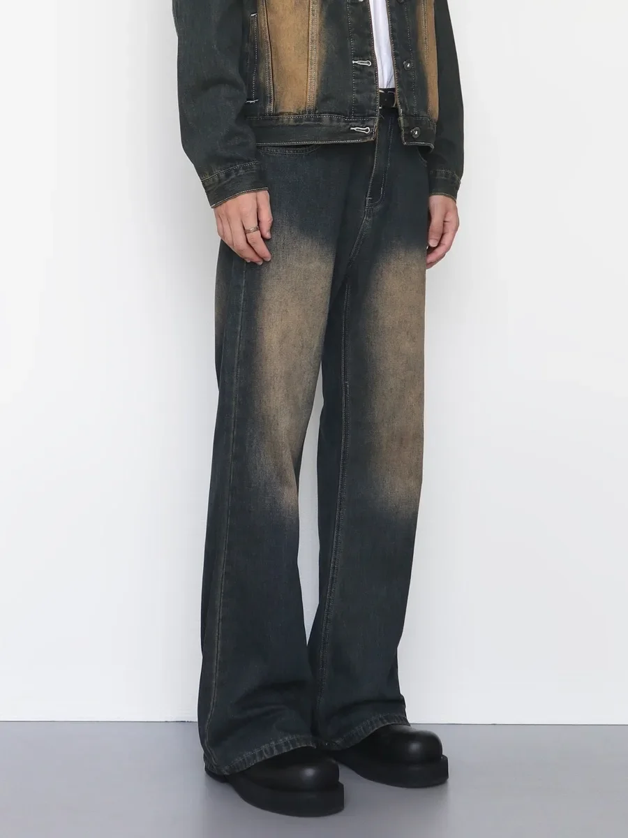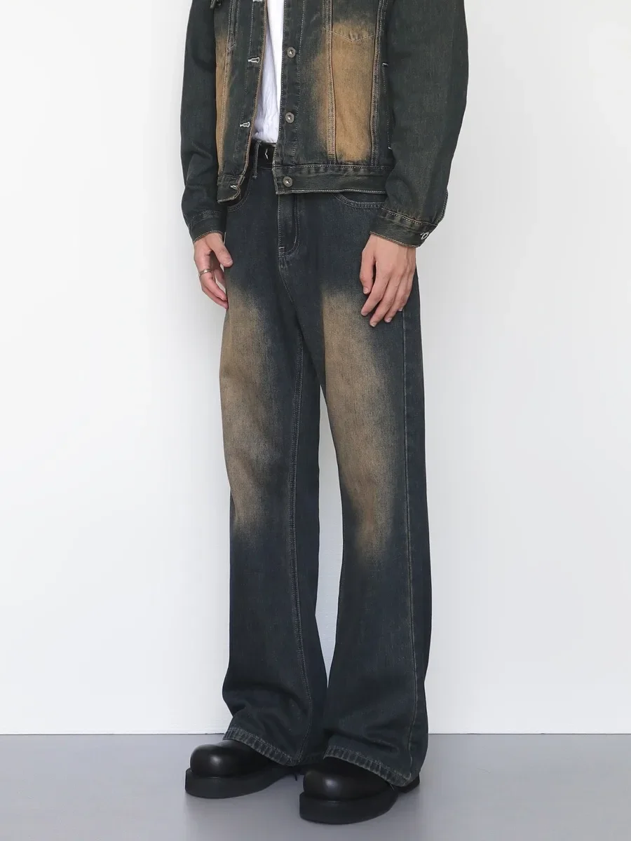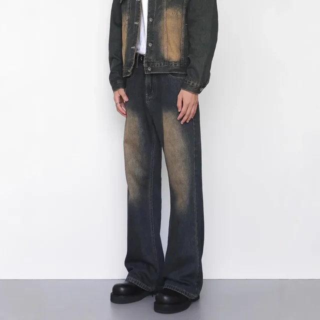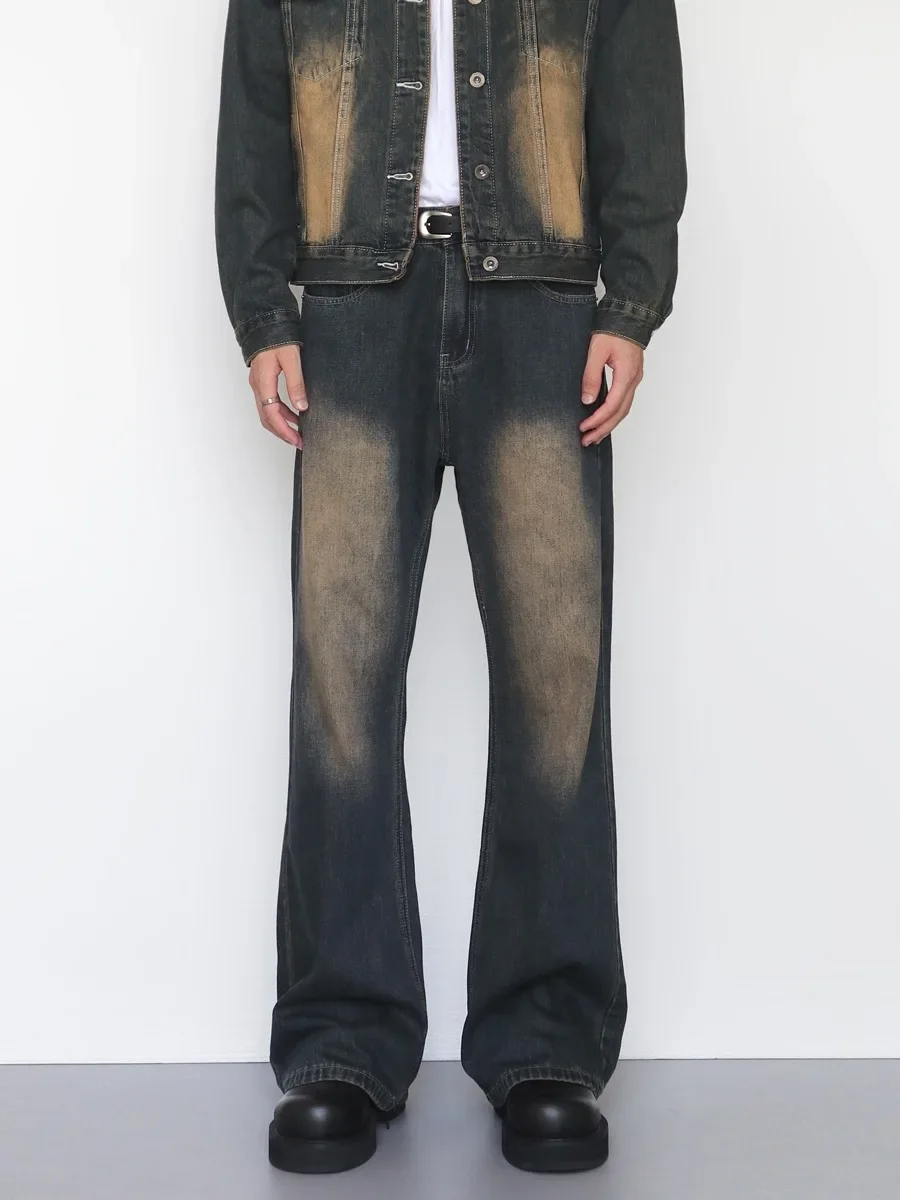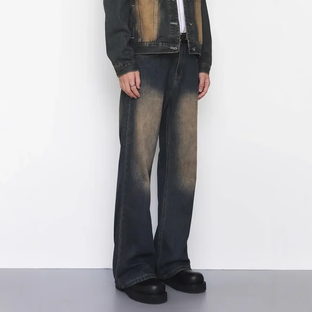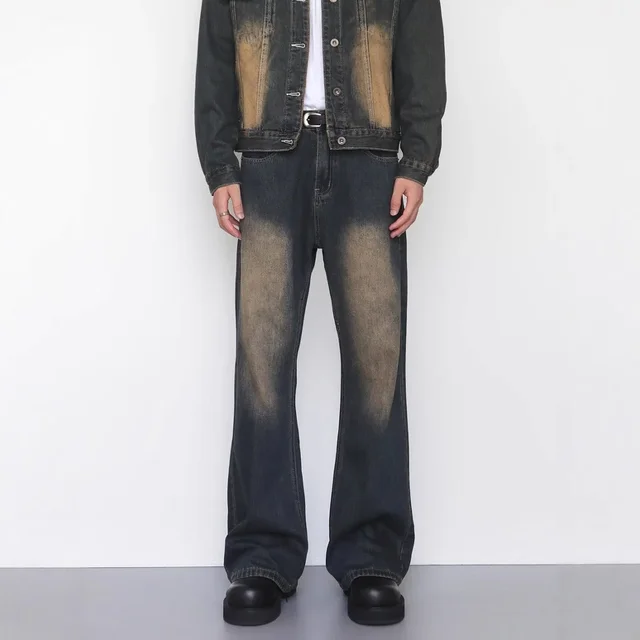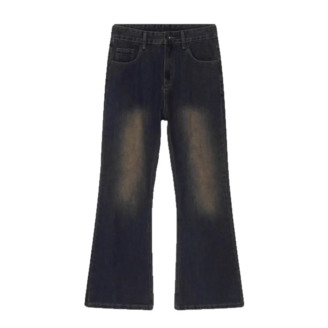 Retro Washed Bell Bottom Jeans Loose Straight Leg Casual Trousers for Men And Women Vintage Faded AE Stock from China