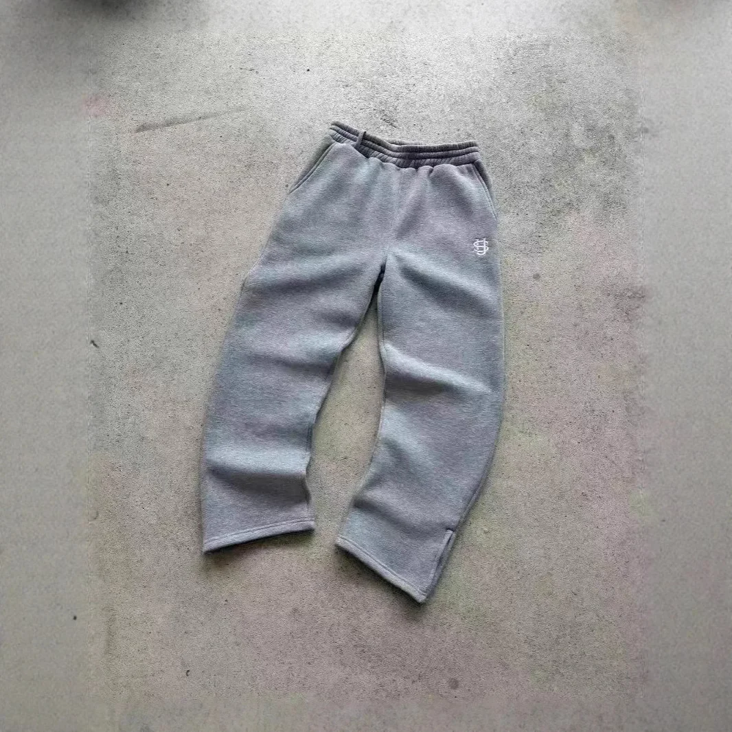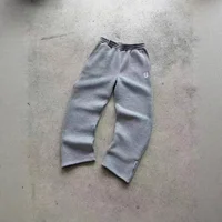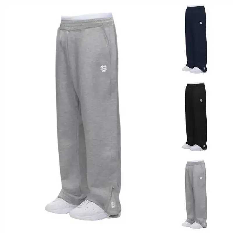 Retro Y2K Streetwear Hip Hop Loose Elastic Waist Zipper Casual Trousers Pure Color Sporty Comfortable Knitted Men's Pants