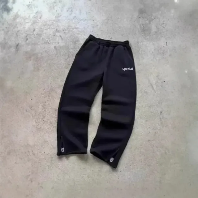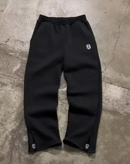 Retro Y2K Streetwear Hip Hop Loose Elastic Waist Zipper Casual Trousers Pure Color Sporty Comfortable