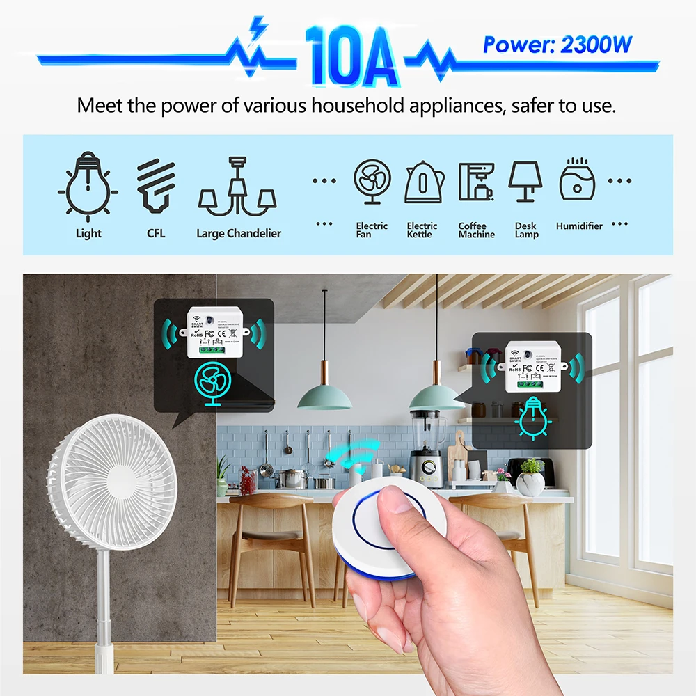 One receiver supports about 10 remote controllers,The device can then be turned on and off in multiple locations for convenience and power savings.