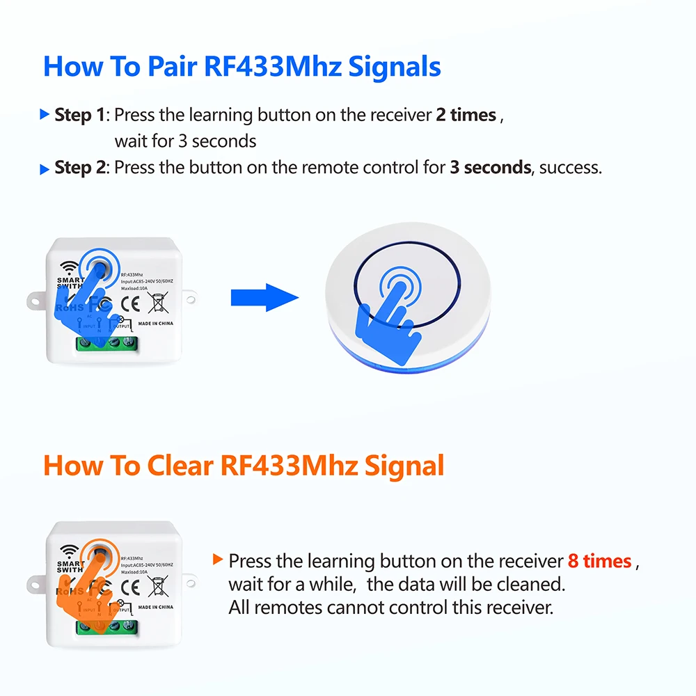 Step 1: Press the learning button on the receiver 2 times , wait for 3 seconds.