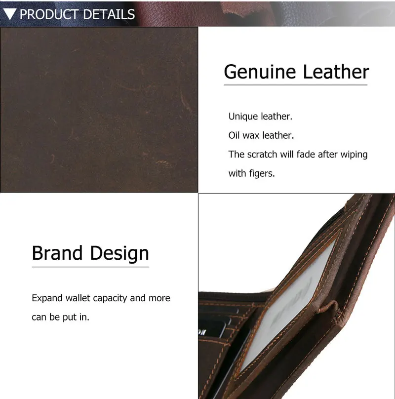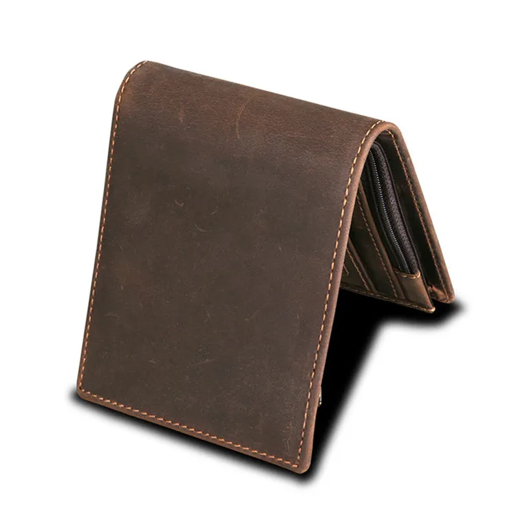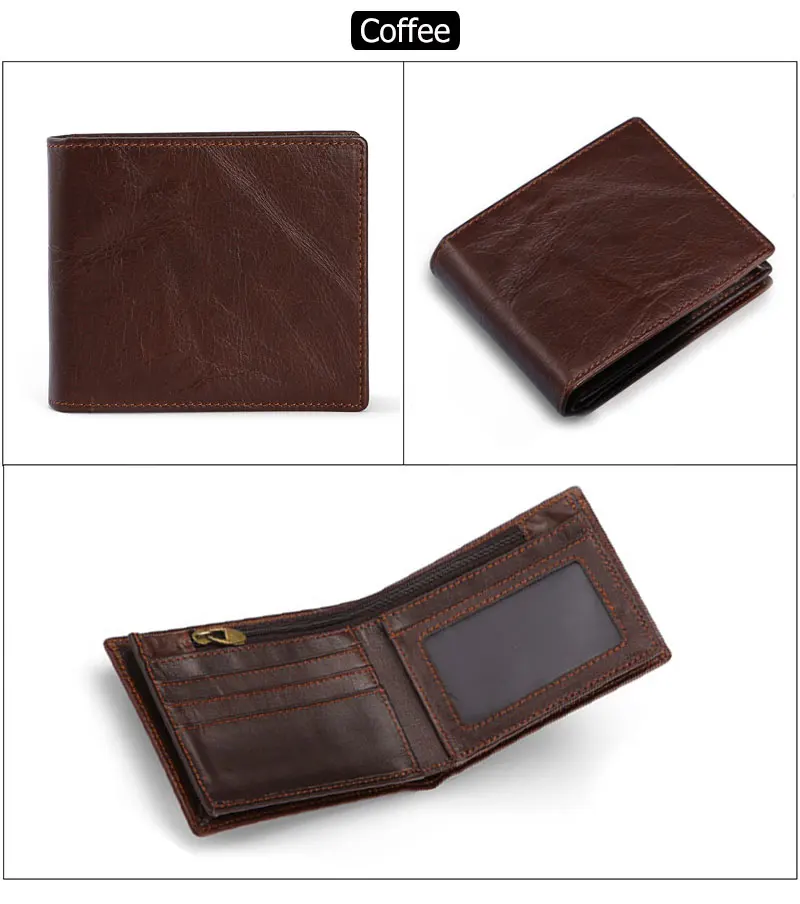 Original price was: 61.78$.30.89$Current price is: 30.89$.RFID Blocking Men’s Oil Wax Skin Wallet Man Vintage Cow Genuine Leather Wallet Male Handmade Billfold