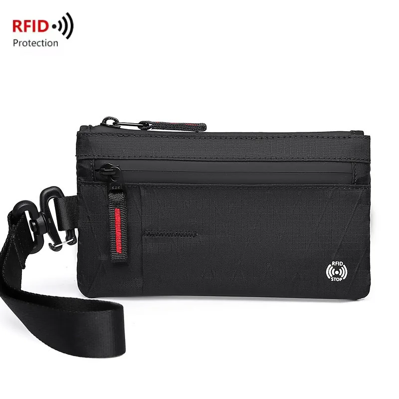 Rfid Credit Card Holder Men Wallets Luxury Nylon Slim Wallet Zipper Key Card Case Male Tactical Purse Coin Purse With Carabiner