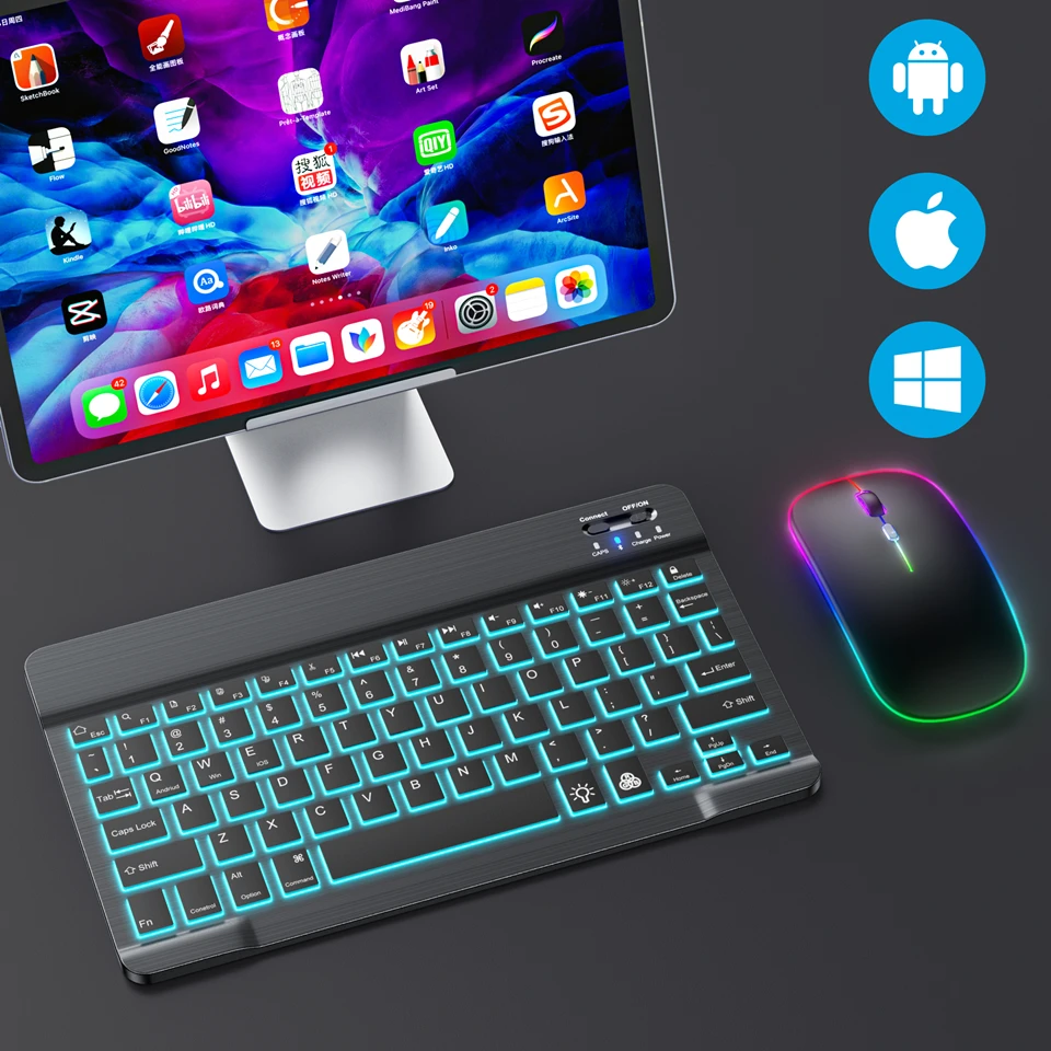 RGB Bluetooth Keyboard Wireless Keyboard Bluetooth Mini Spanish Russian Keyboard RGB Backlit Rechargeable For ipad Phone Tablet