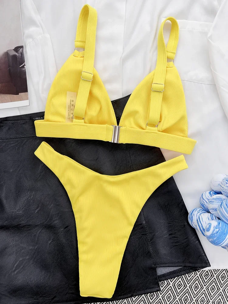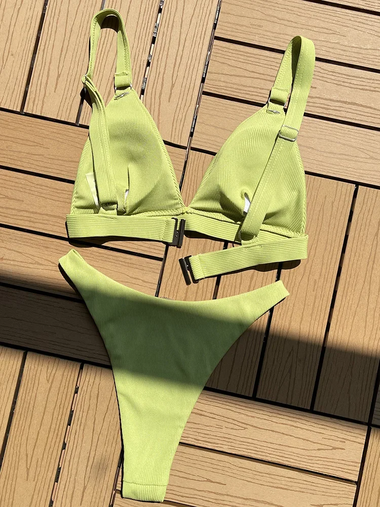 Solid Bandage Swimwear Women Bikini 2017 Beachwear Thong Swimsuit Pink Biquini Bathing Suit Brazilian Push Up Bikinis