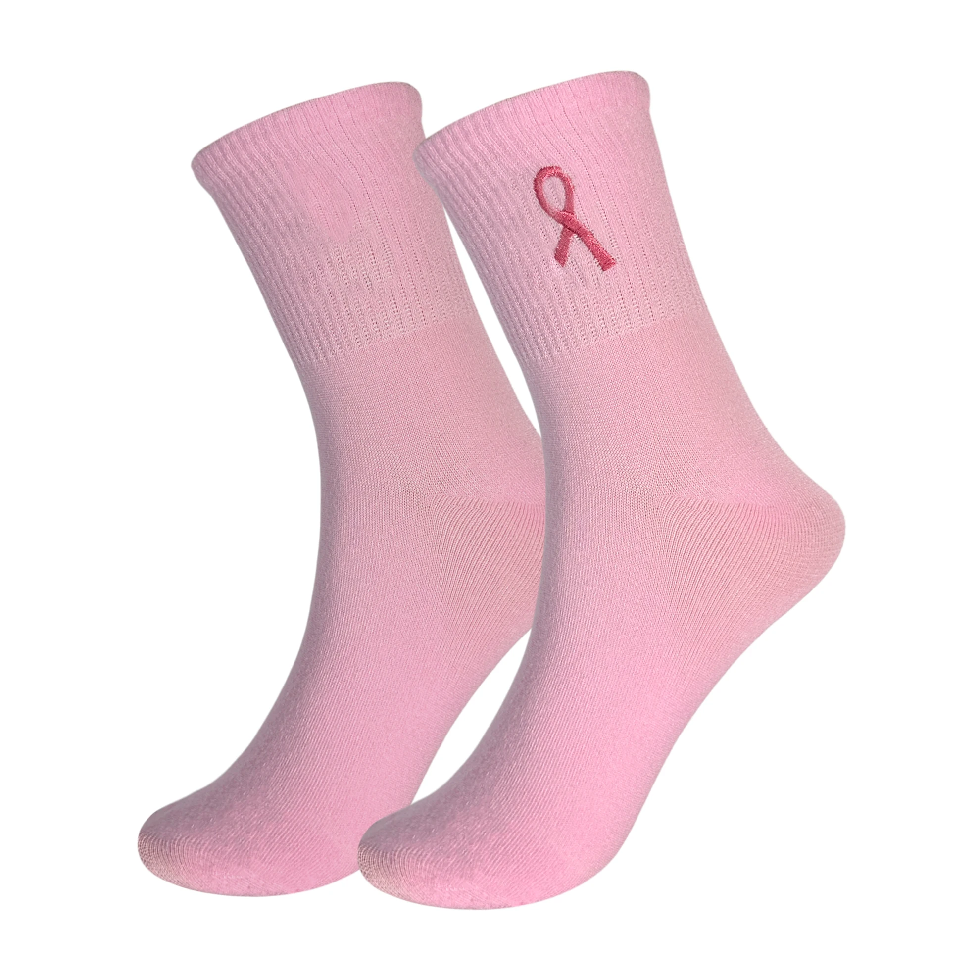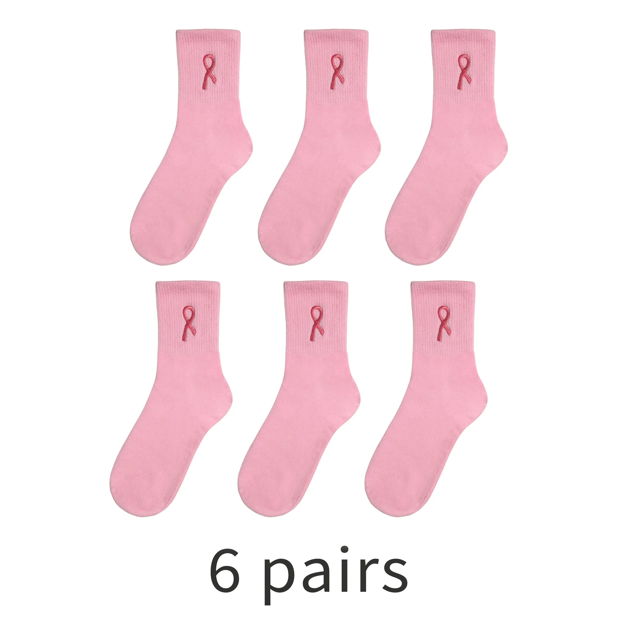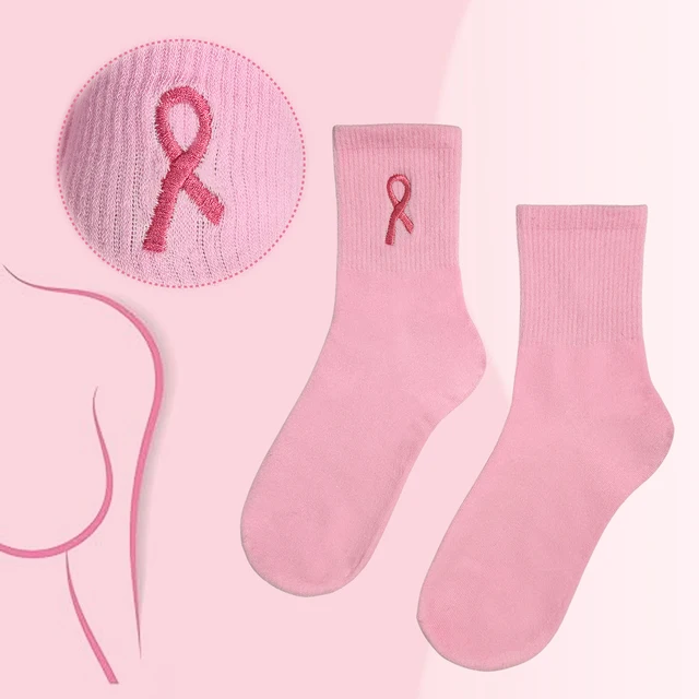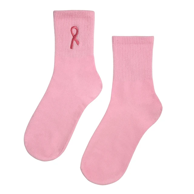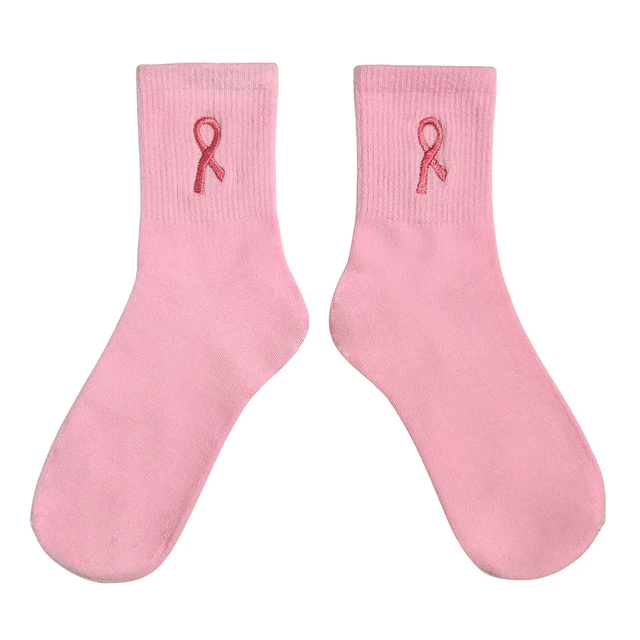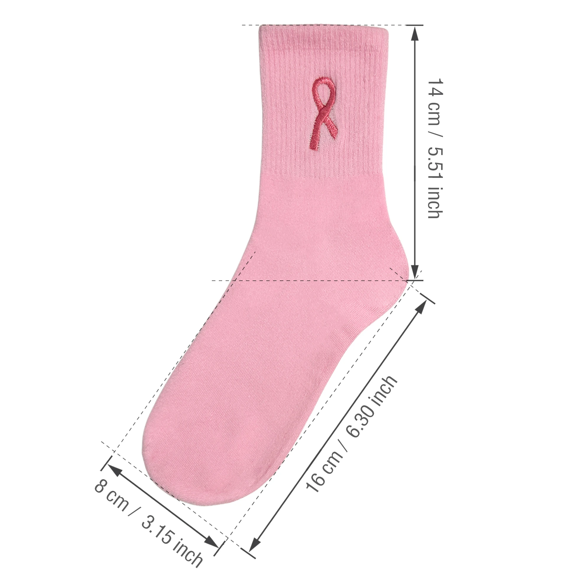 Ribbon Embroidered Breast Cancer Awareness Socks, Cozy Soft Crew Socks, Great Gifts For Ladies, Youth,