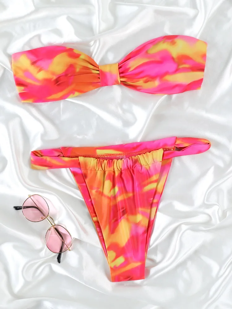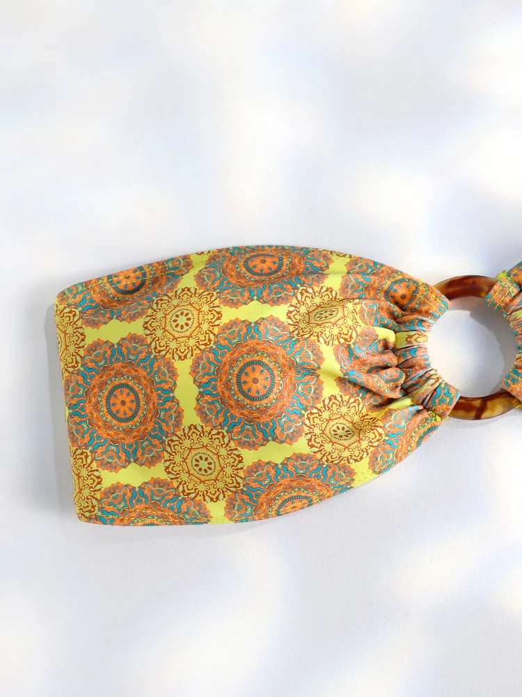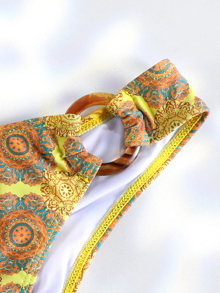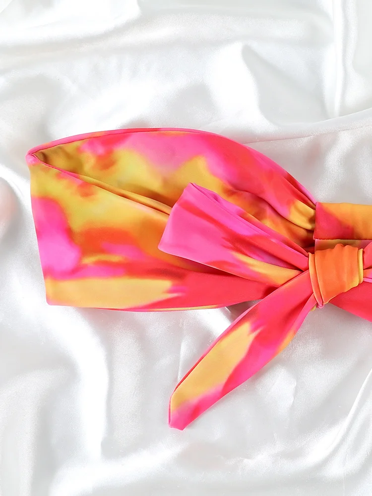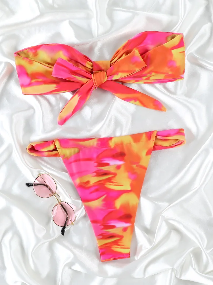 UETEEY 2025 New Summer Swimwear Bikinis Set Sexy Printed Lace Back Naked Bikini 2 Pieces Set Women's Swimwear Slit Beach Bikini
