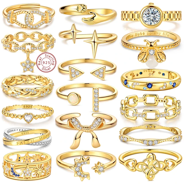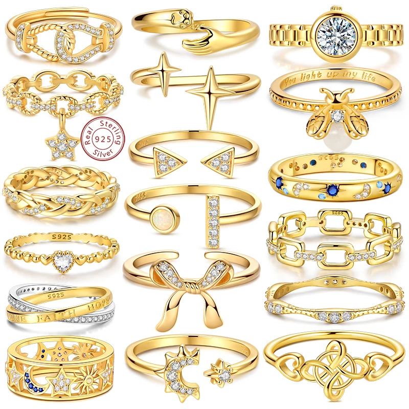 925 Sterling Silver Rings Gold Color Sparking Popular LOVE Wedding Ring Certified Women Engagement DIY Jewelry Anniversary Gifts