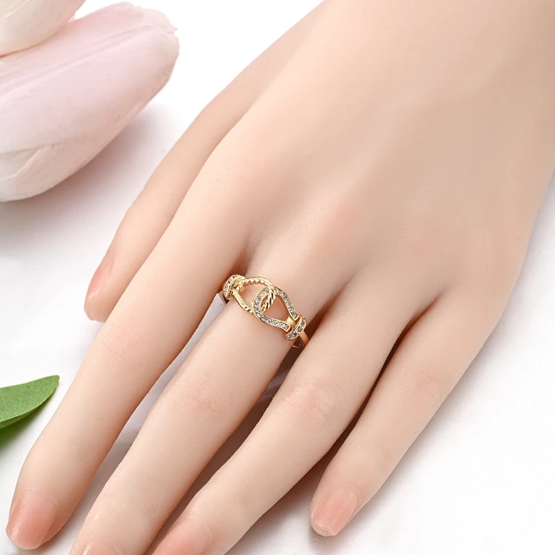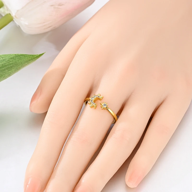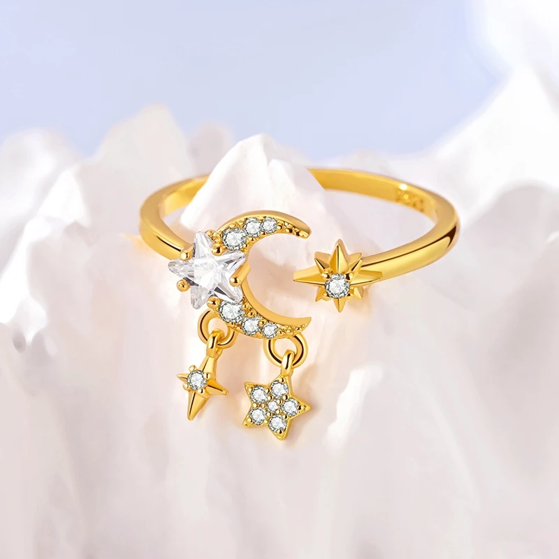 | Shapes/Patterns | Sparkling gold heart and moon intertwined chain ring |