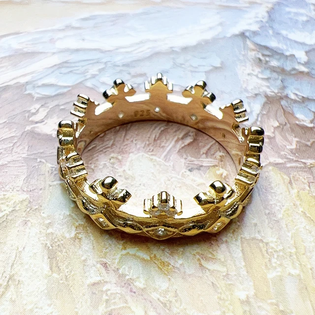 Ring Royalty Crown Gold Brand New Vintage Gift Fine Jewerly For Women In 925 Sterling Silver