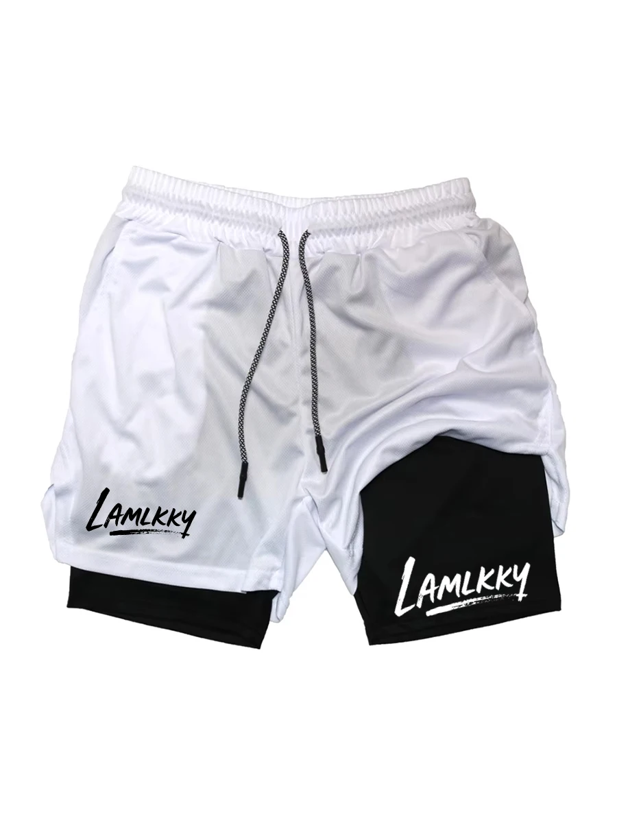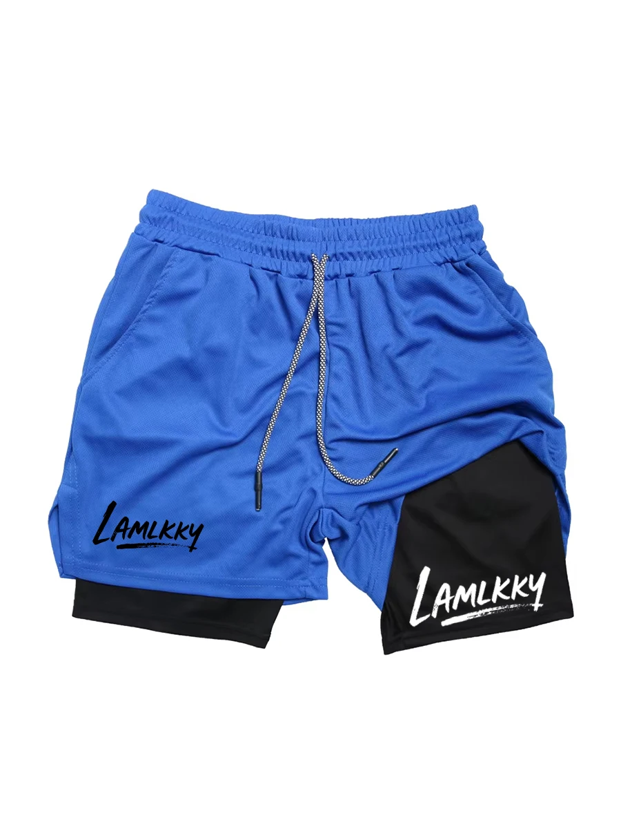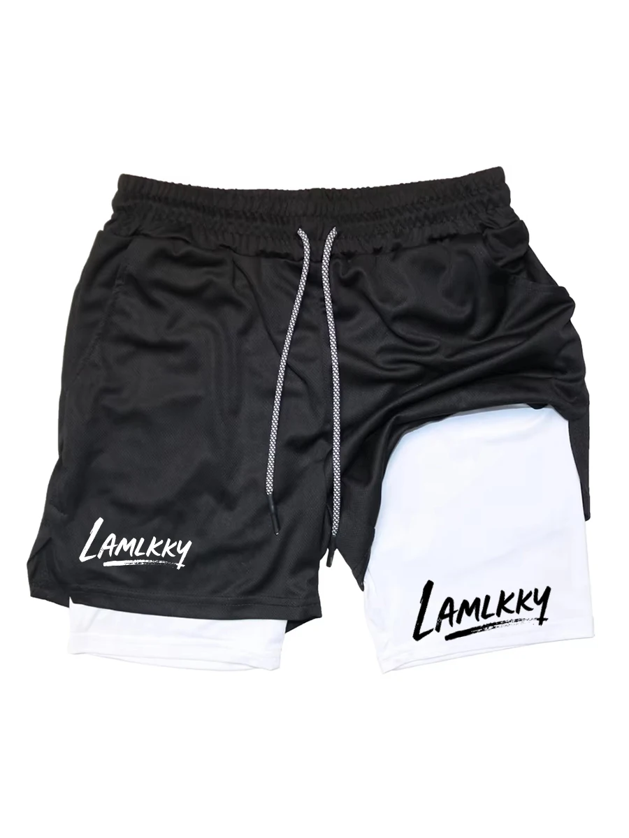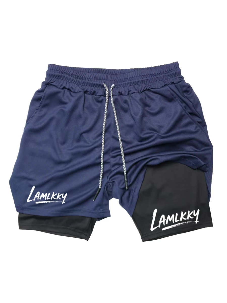 Men's printed athletic running shorts, stylish quick-dry shorts (with phone pocket), summer gym shorts, activewear RL0504