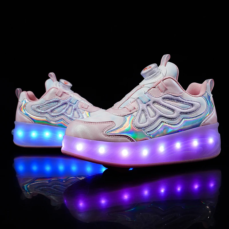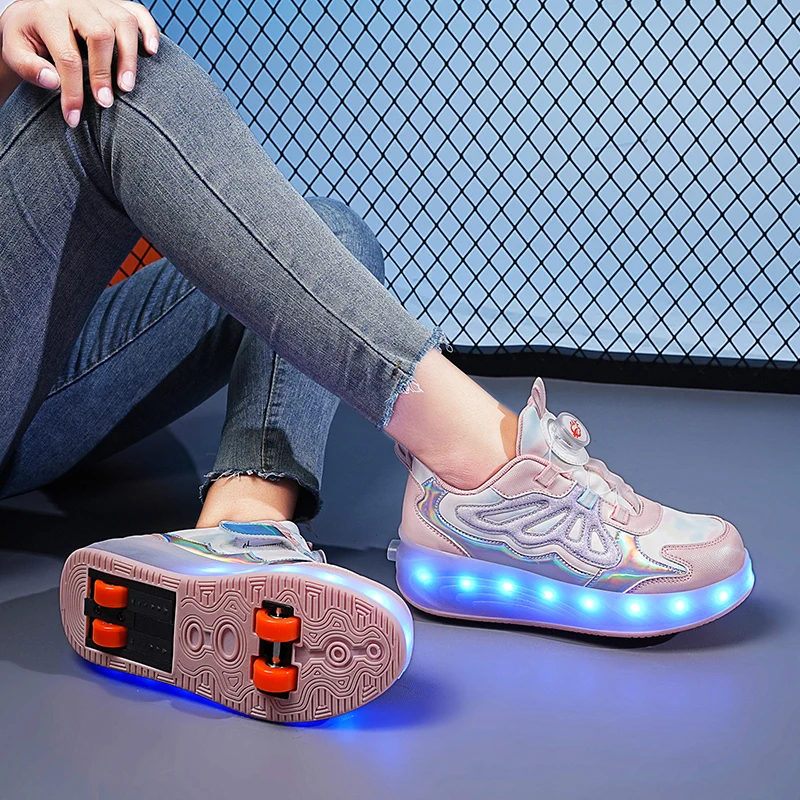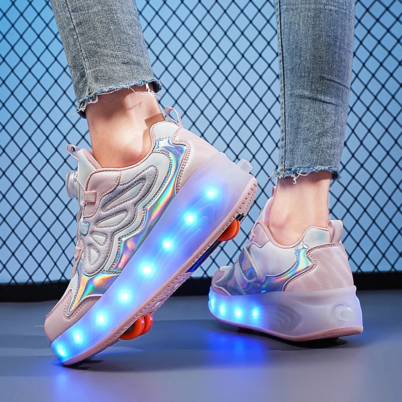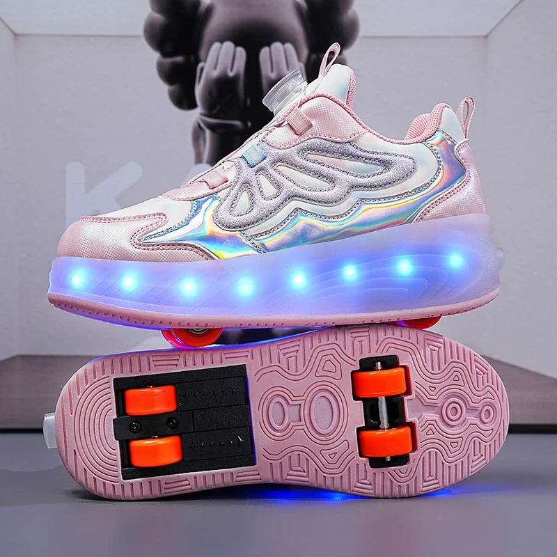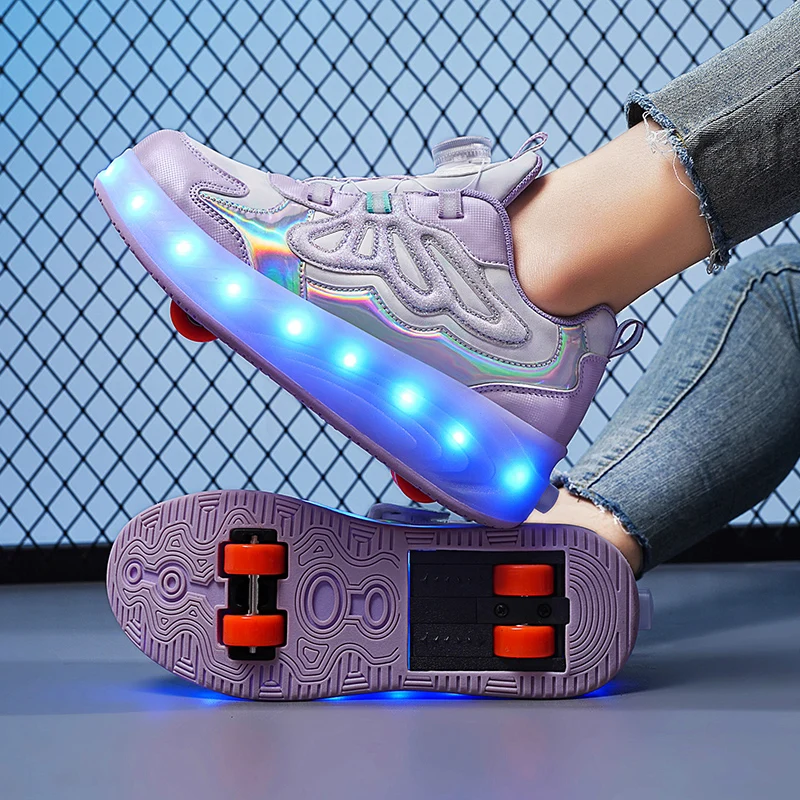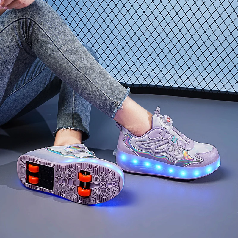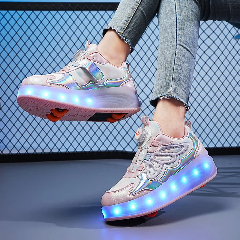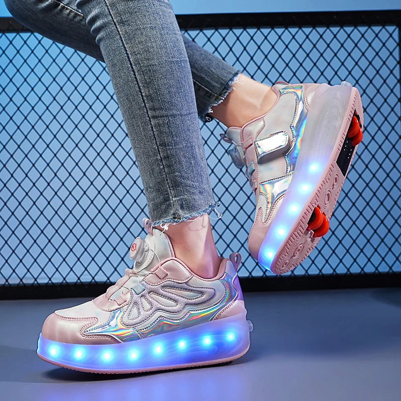 Trendy LED Light Rechargeable Kids Roller Skate Shoes 2 Wheels Fashion Boys Girls Gift Casual Outdoor Sports Running Sneakers