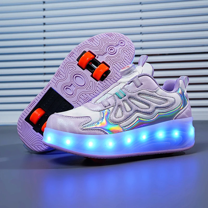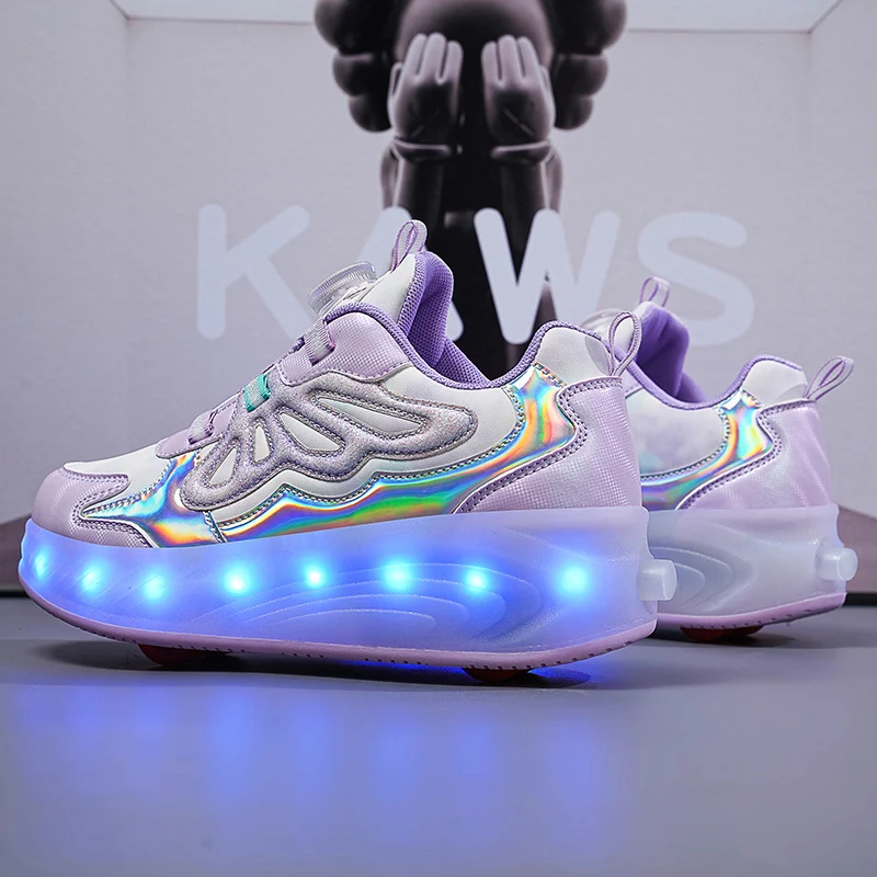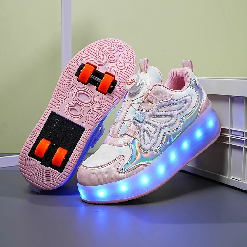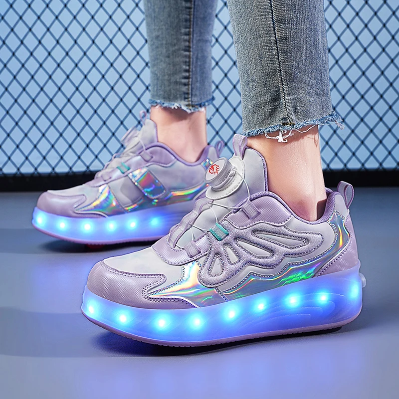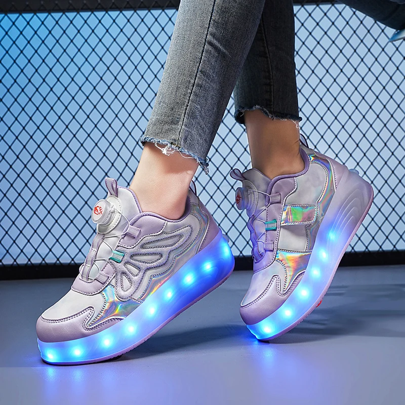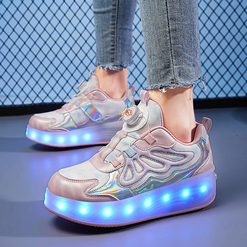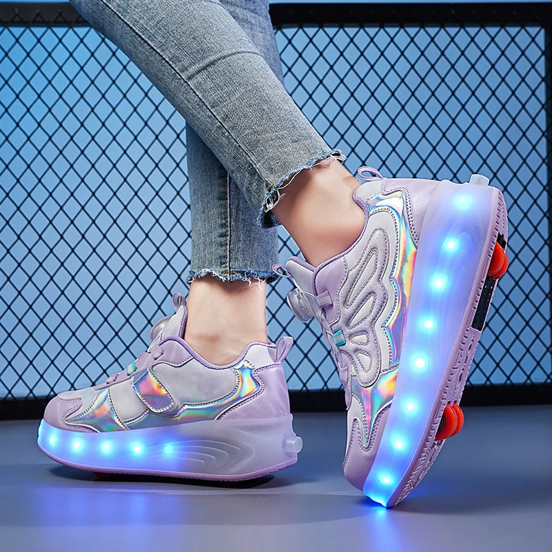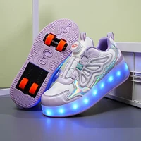 Trendy LED Light Rechargeable Kids Roller Skate Shoes 2 Wheels Fashion Boys Girls Gift Casual Outdoor Sports Running Sneakers