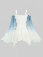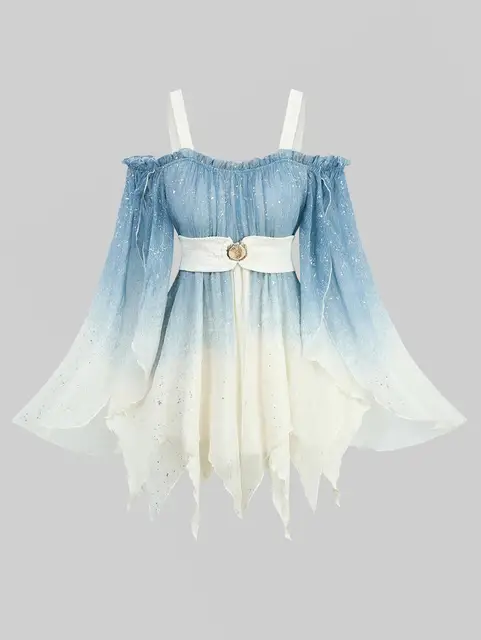 Featurel–Gothic style, flare sleeves, hooded, chains, lace panel, moon and stars, colorblock, ruched, long sleeves, tunic top