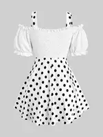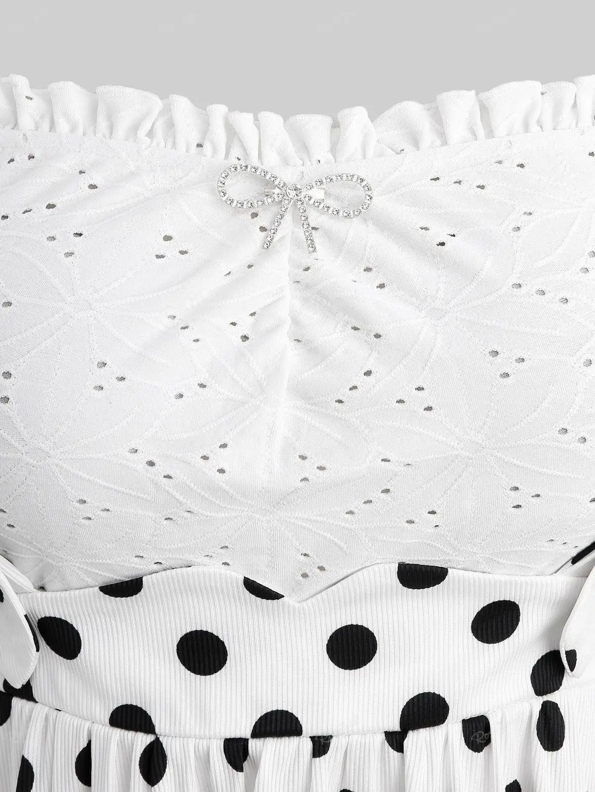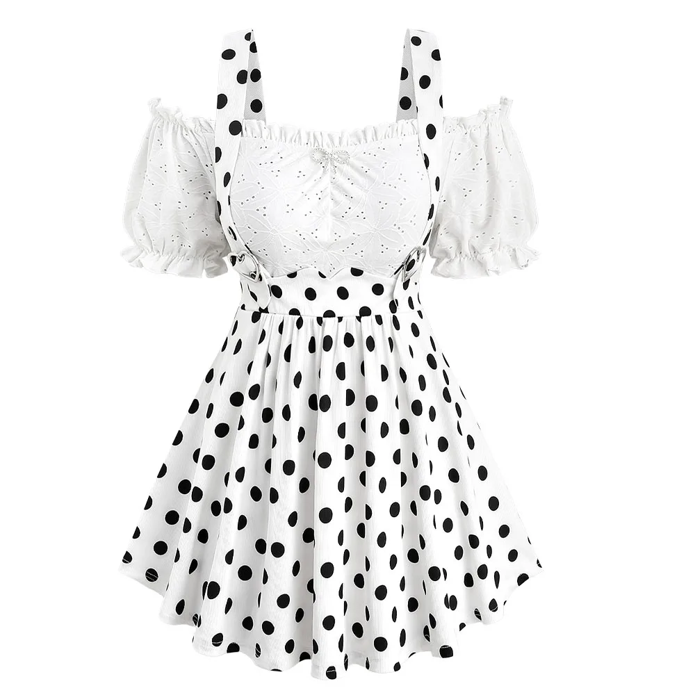 ROSEGAL Plus Size Women's T-Shirt Polka Dot Bowknot Floral Hollow Out Ruffles Cold Shoulder 2 In 1 Top Spring Summer Casual Tees