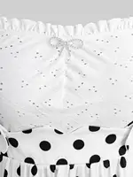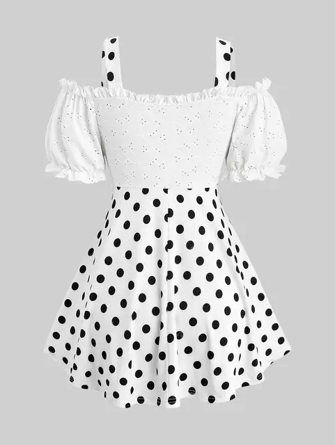 ROSEGAL Plus Size Women’s T-Shirt Polka Dot Bowknot Floral Hollow Out Ruffles Cold Shoulder 2 In