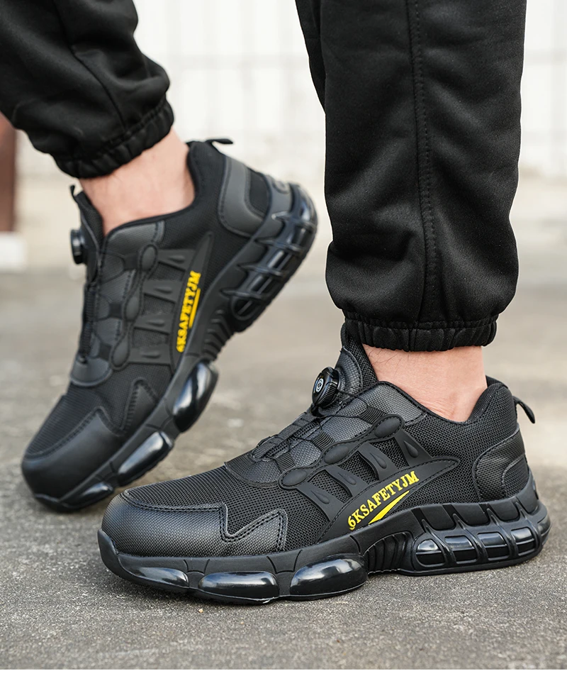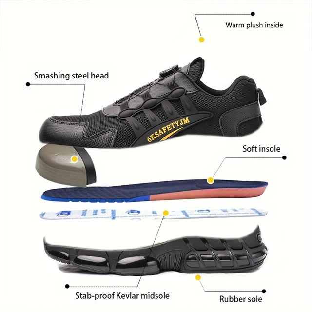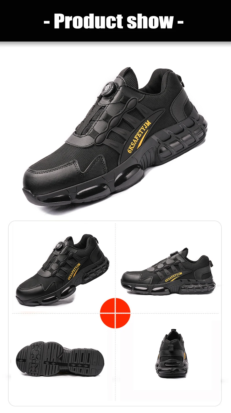 Super light safety shoe:It is like the weight of a pair of running shoes. They can help you to work happily all day without exhausting your feet. With super soft insoles and High elastic sole, your feet are safe and comfortable. Breathable upper is very soft Comfortable, Keep your feet comfortable and breathable.