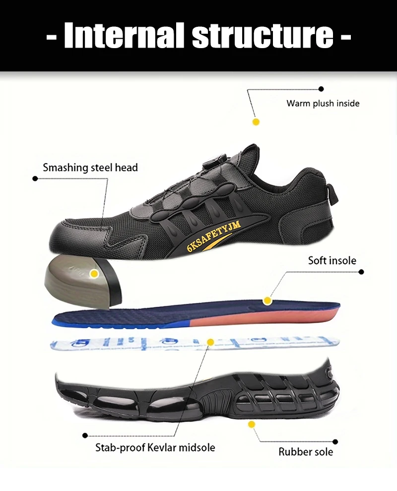 Kevlar Midsole Anti-puncture:This steel toe shoes are made of Kevlar, which is a protective fiber material. It can protect feet from being punctured by sharp objects like nails, steel bar.