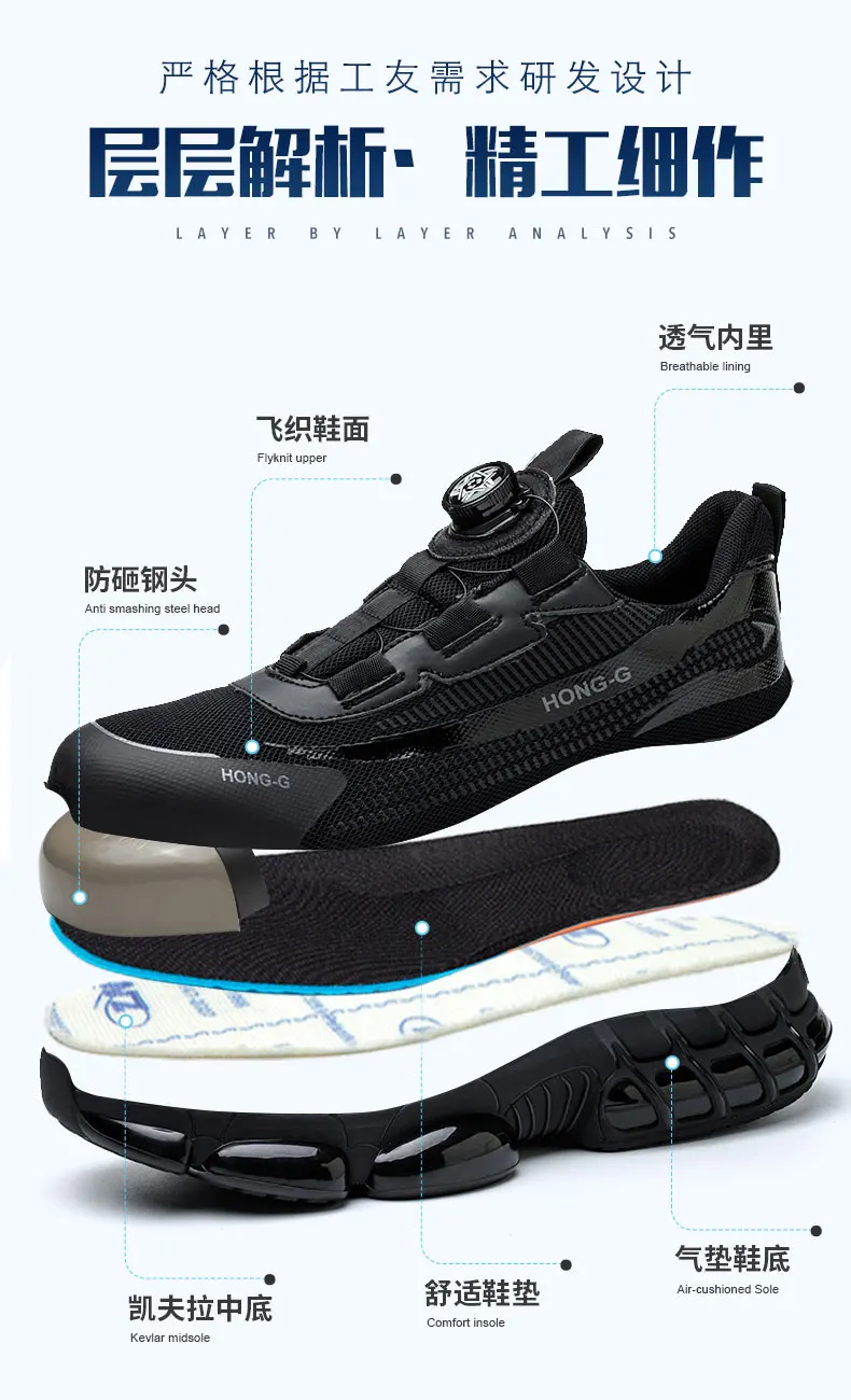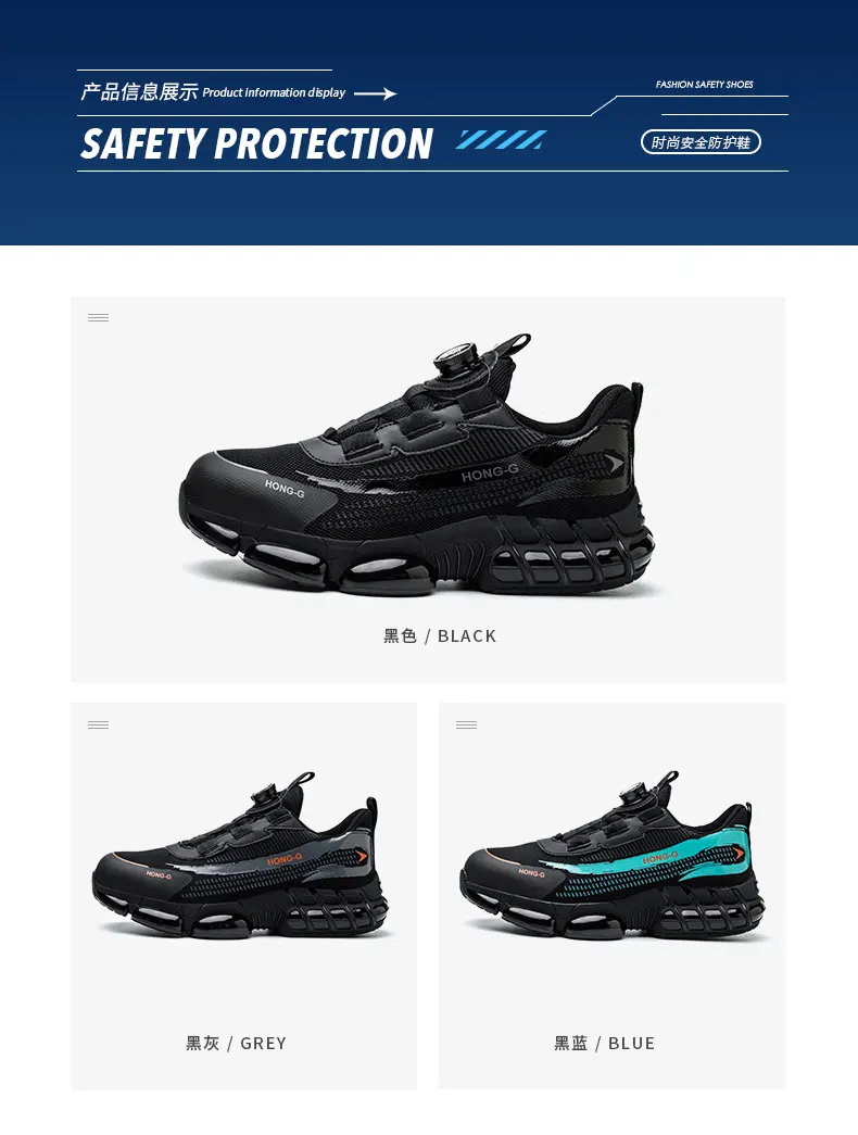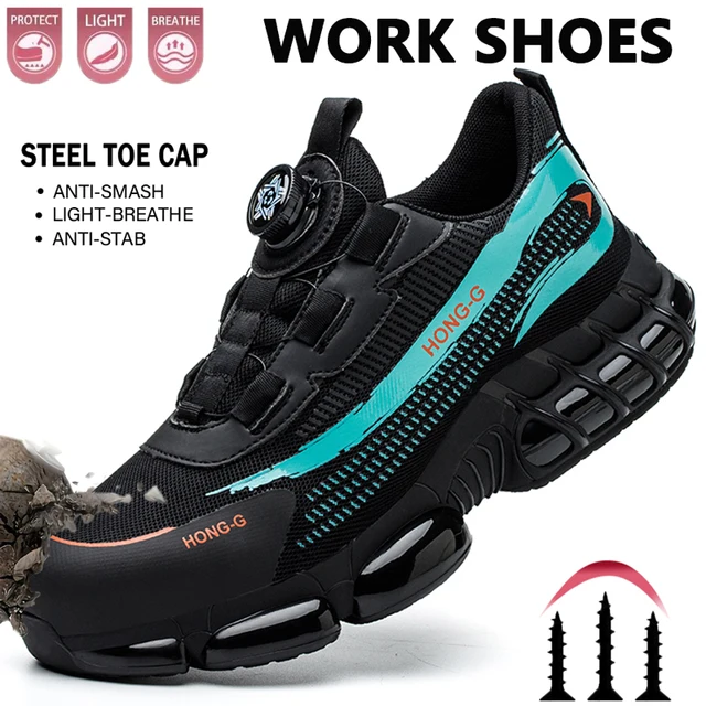 Steel Toe Anti-crash : European standard steel head impact resistance of 200J Kevlar Midsole Anti-puncture:This steel toe shoes are made of Kevlar, which is a protective fiber material. It can protect feet from being punctured by sharp objects like nails, steel bar. Wear-resistant PU sole:Clear texture design, stable grip on the ground, and non-slip. Super light safety shoe:It is like the weight of a pair of running shoes. They can help you to work happily all day without exhausting your feet. With super soft insoles and High elastic sole, your feet are safe and comfortable.Breathable upper is very soft Comfortable, Keep your feet comfortable and breathable.