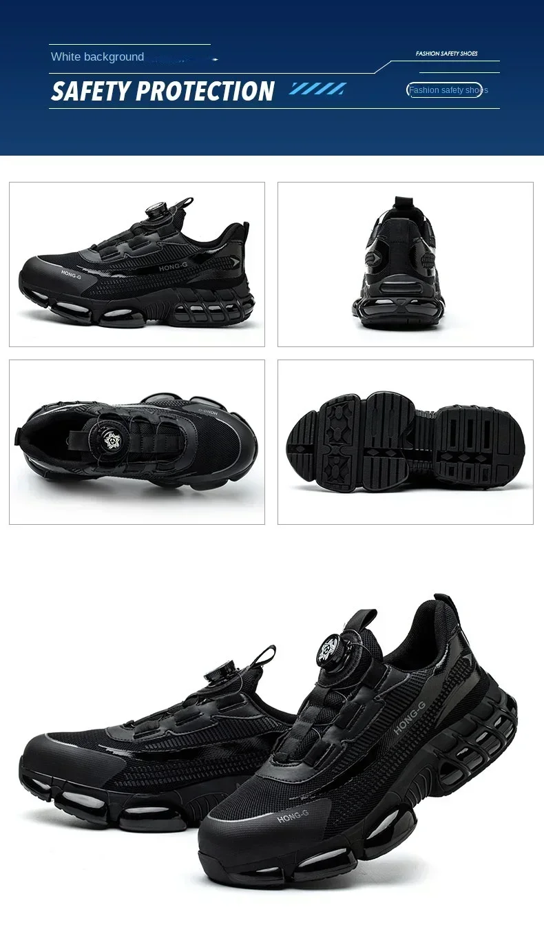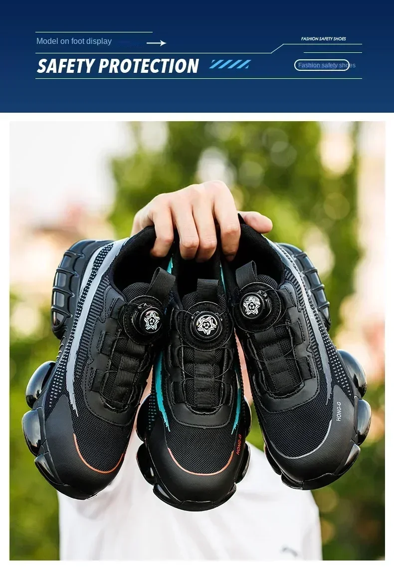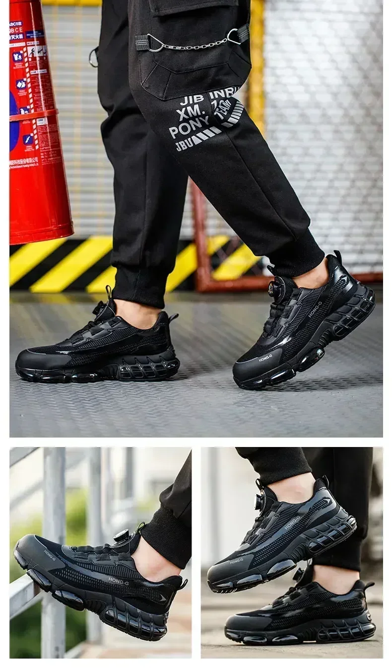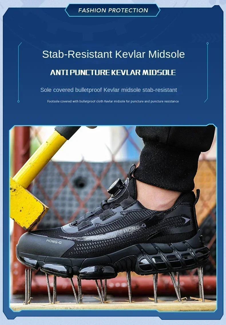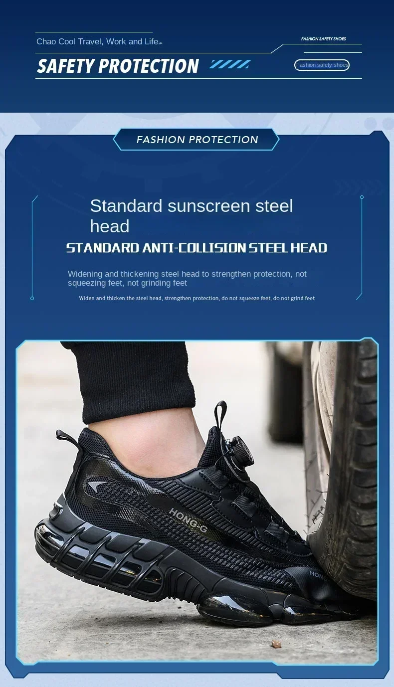 Men Rotating Button Work Sneakers Steel Toe Shoes Safety Boots Puncture-Proof work Shoes Indestructible Fashion Protective Shoes