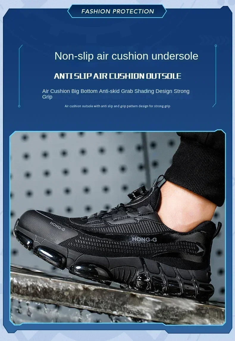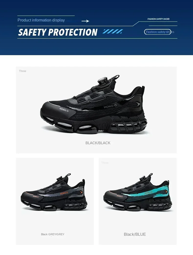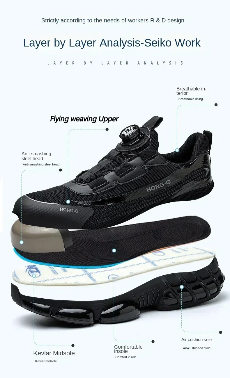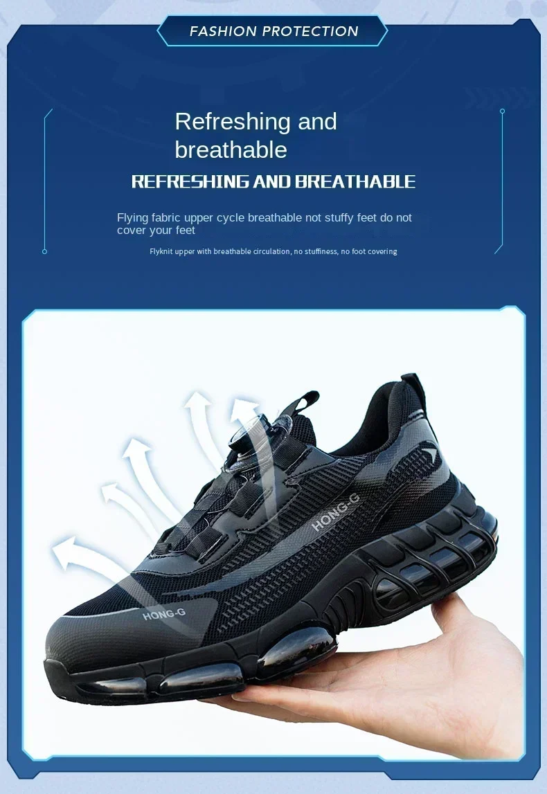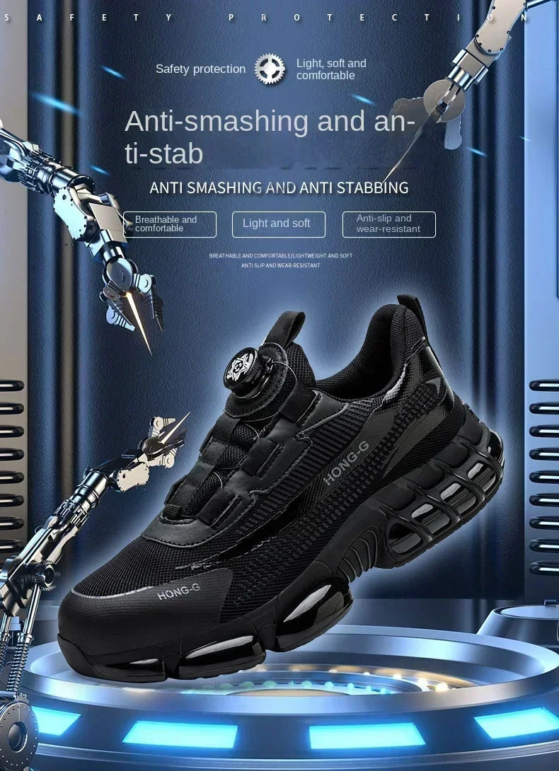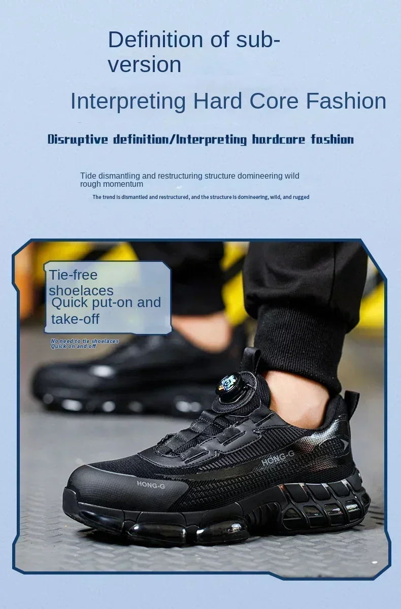 Men Rotating Button Work Sneakers Steel Toe Shoes Safety Boots Puncture-Proof work Shoes Indestructible Fashion Protective Shoes