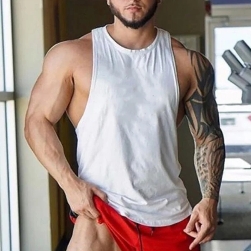 Running Vest Men Summer Plain Cotton Muscle Bodybuilding Stringer Tank Tops Mens Fitness Sleeveless Shirts