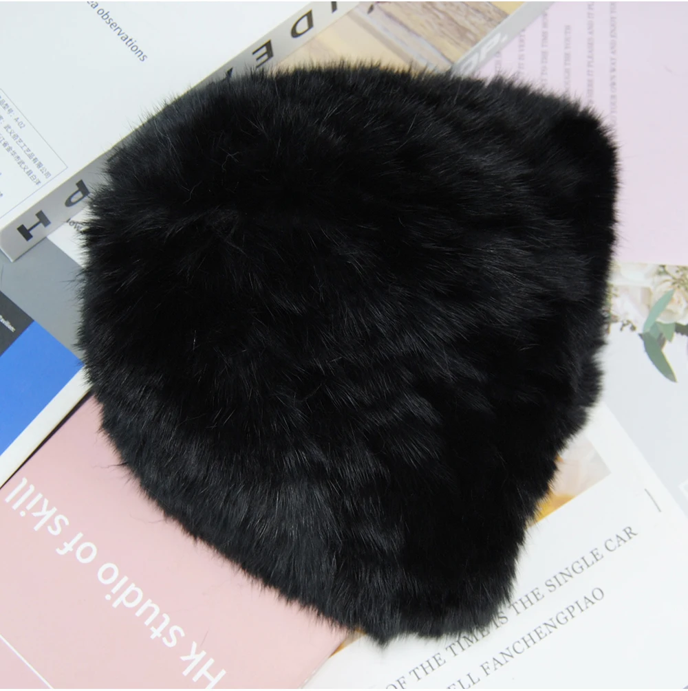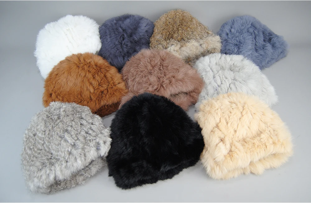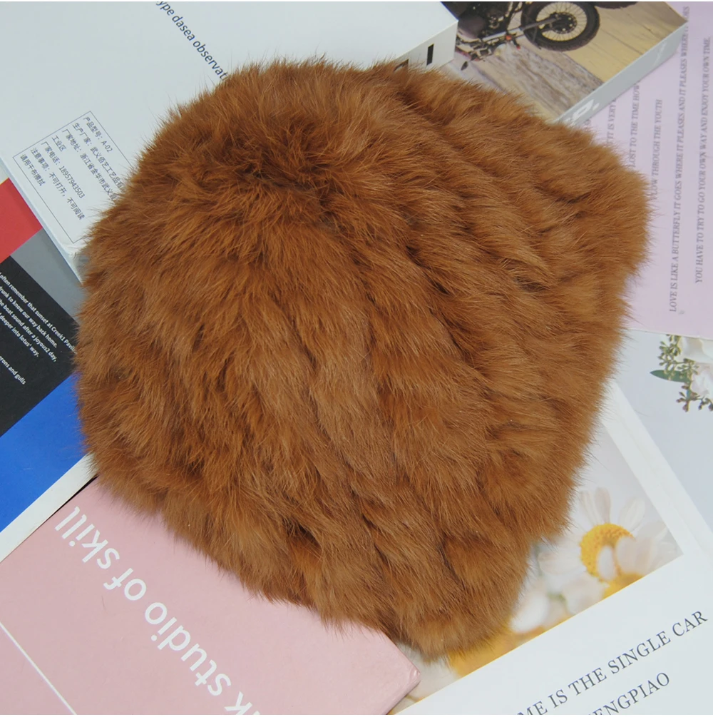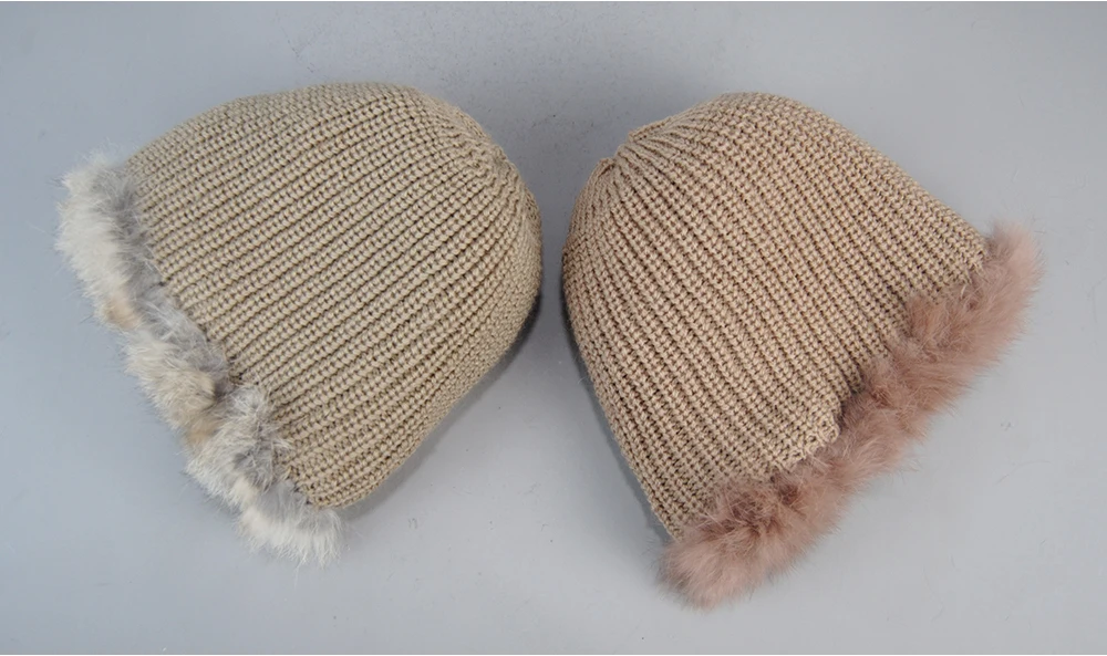 New Arrival Elegant Women Knitted Hats Rabbit Fur Cap Autumn Winter Hat Ladies Female Fashion Skullies Beret Hat