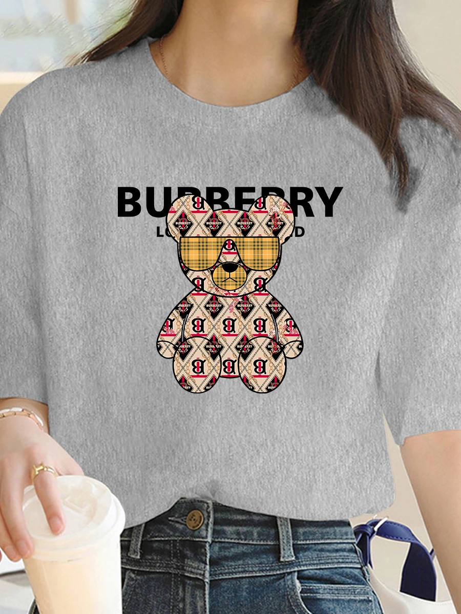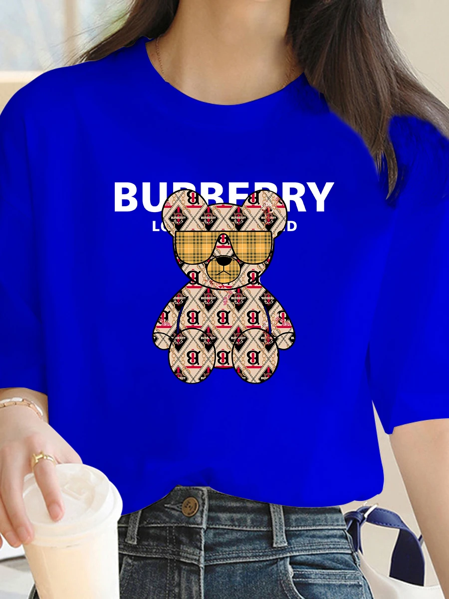 S-3XL Cute Bear Print T-shirt 100% Cotton For Women’s High-Quality Summer Casual Oversized Y2k