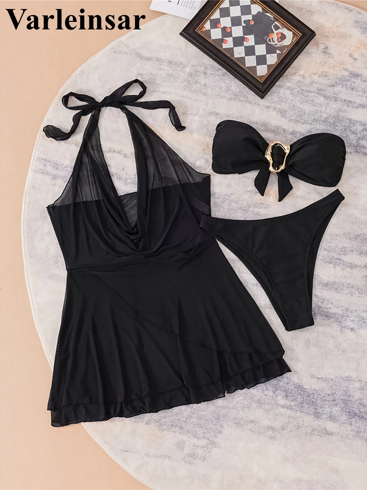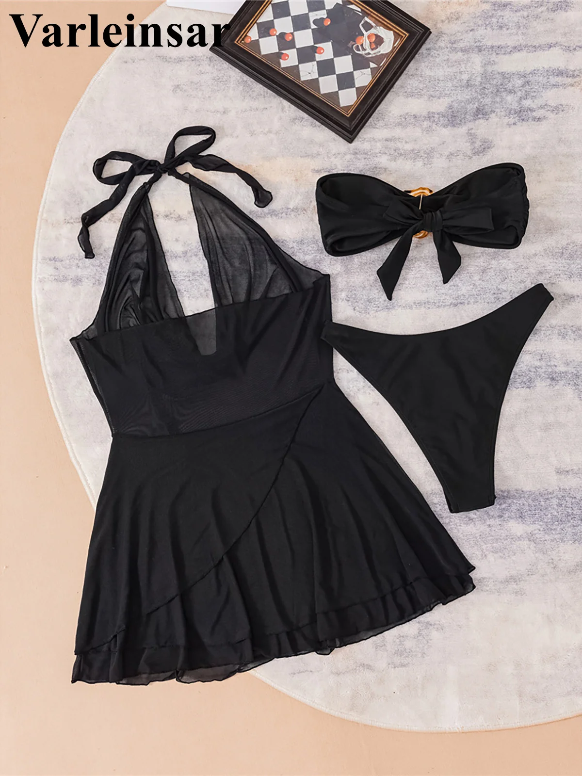 Be the first to review “S – XL With Halter Dress Bandeau Bikini Women Swimwear Female Swimsuit Three-pieces Bikini set”
