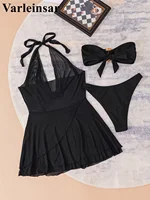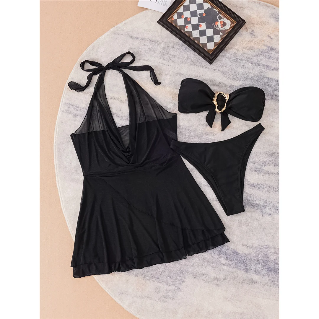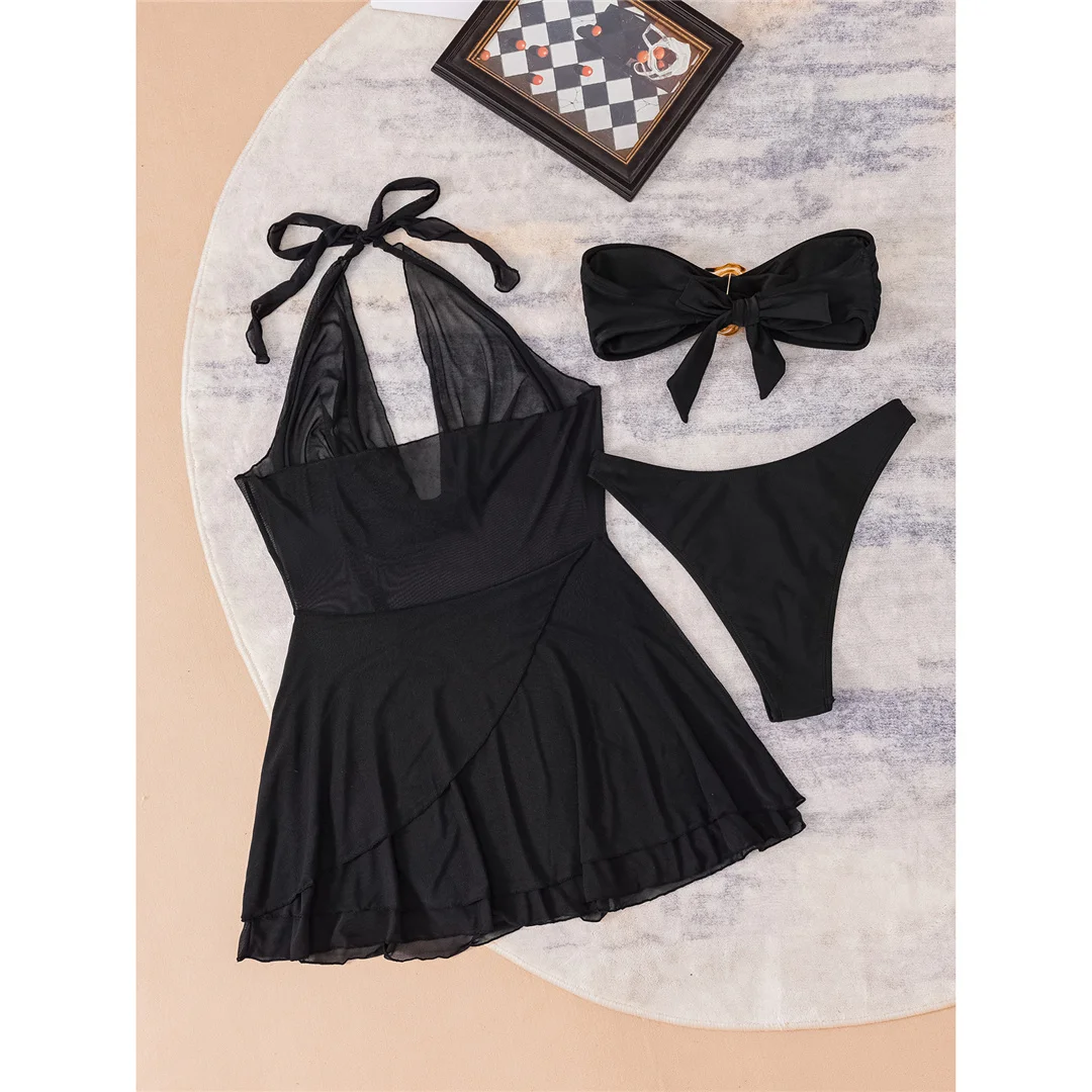 S – XL With Halter Dress Bandeau Bikini Women Swimwear Female Swimsuit Three-pieces Bikini set