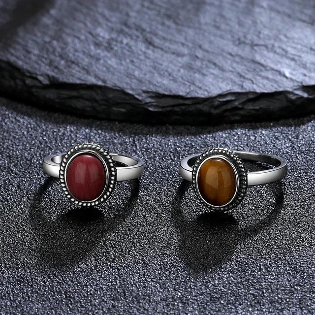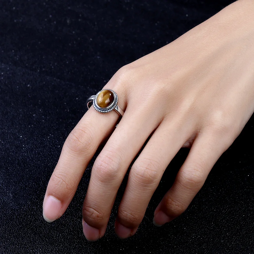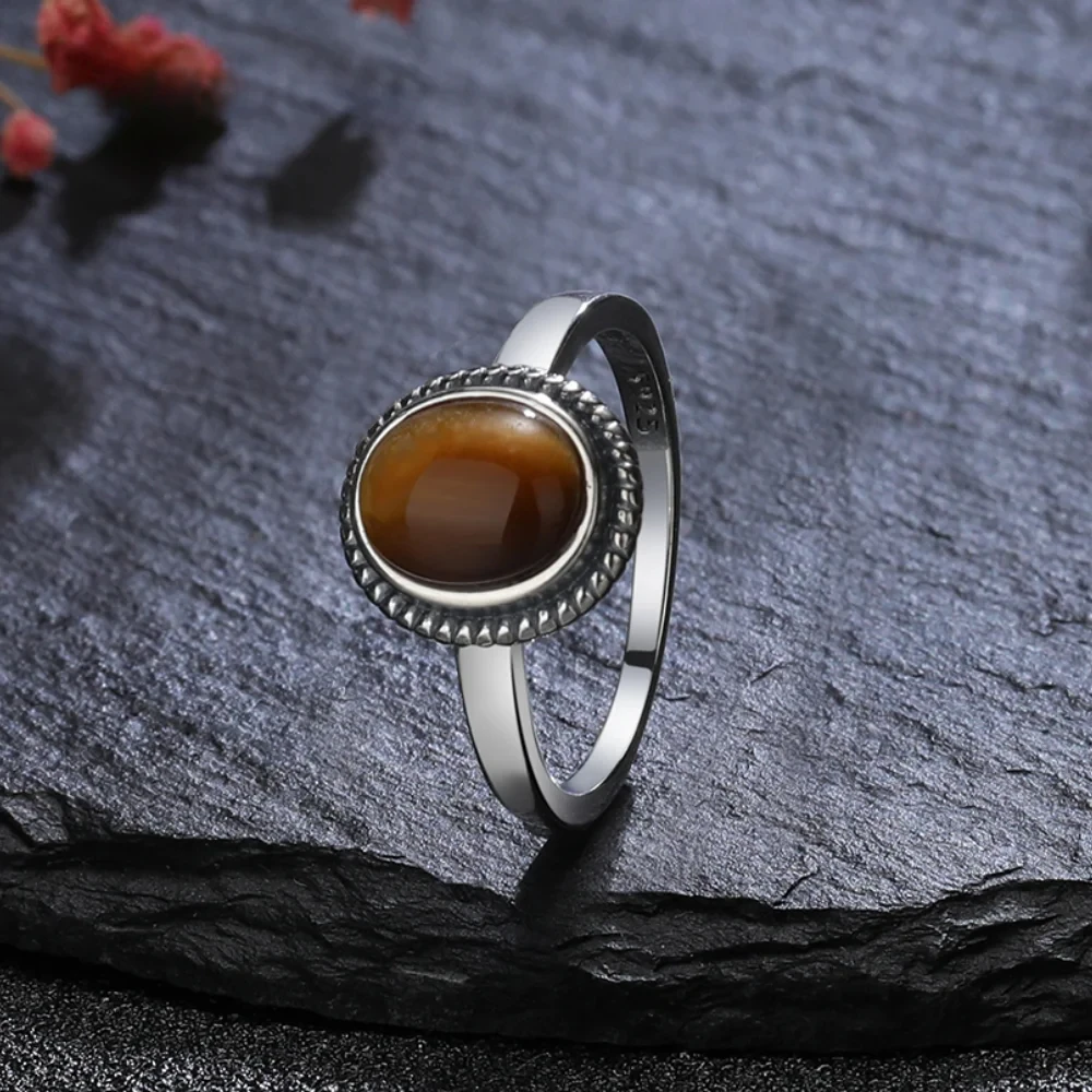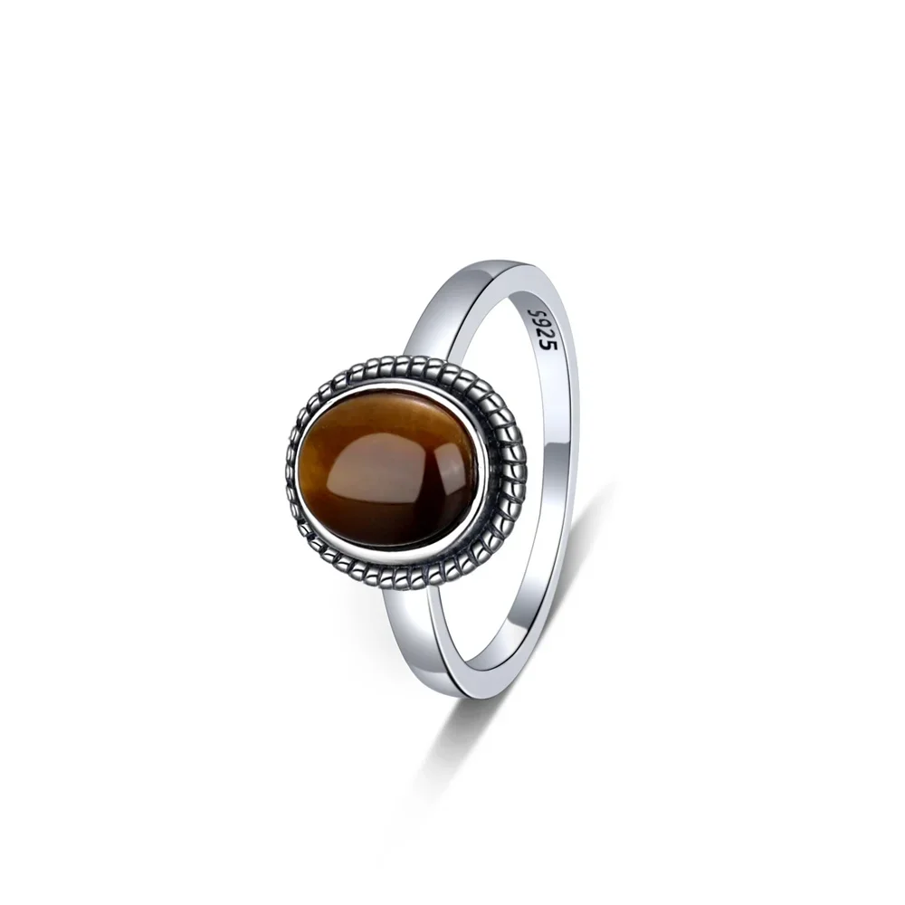 925 Sterling Silver Jewelry Simple 8x10MM Oval Tiger’s Eye Stone Vintage Rhodochrosite Rings Gifts Jewelry Ring Wholesale