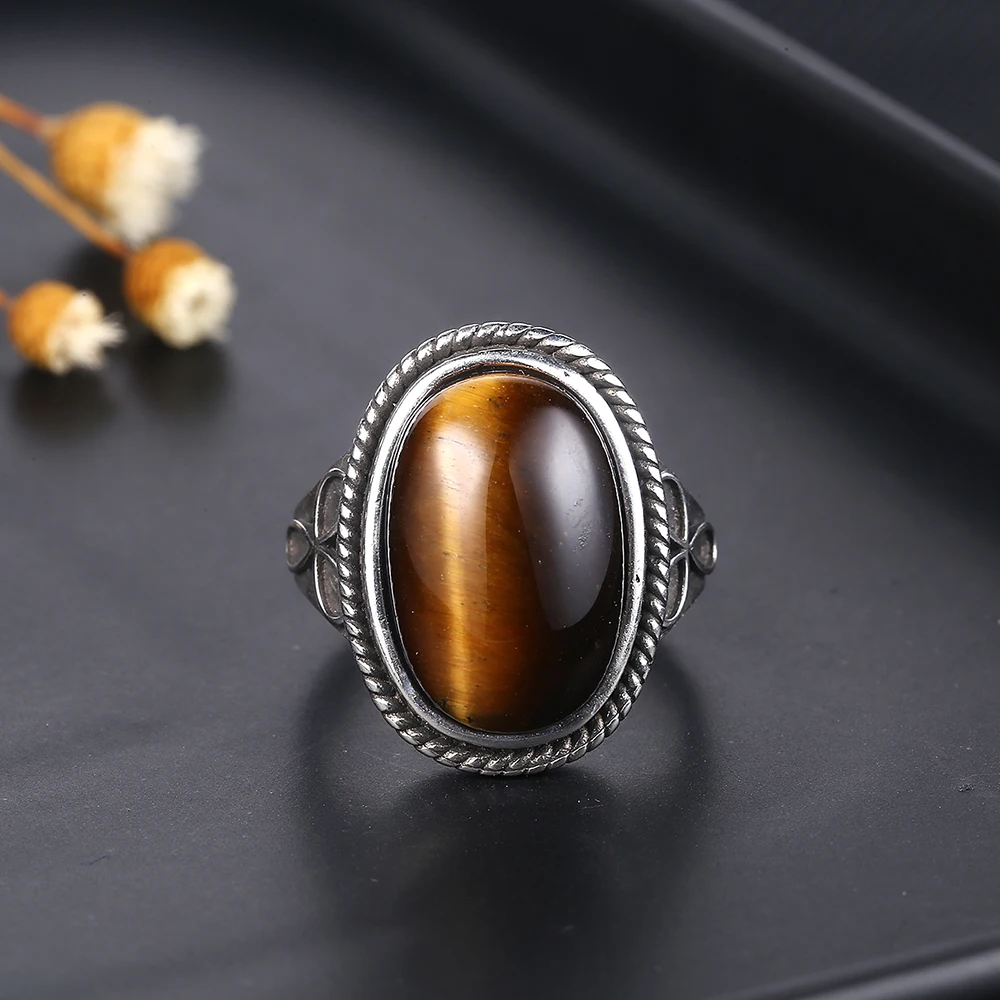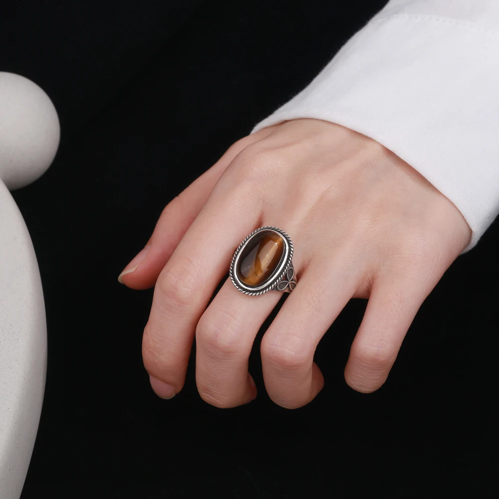 Round Oval Big Natural Moonstones Rings Women's S925 Silver Rings Gifts Vintage Fine Jewelry