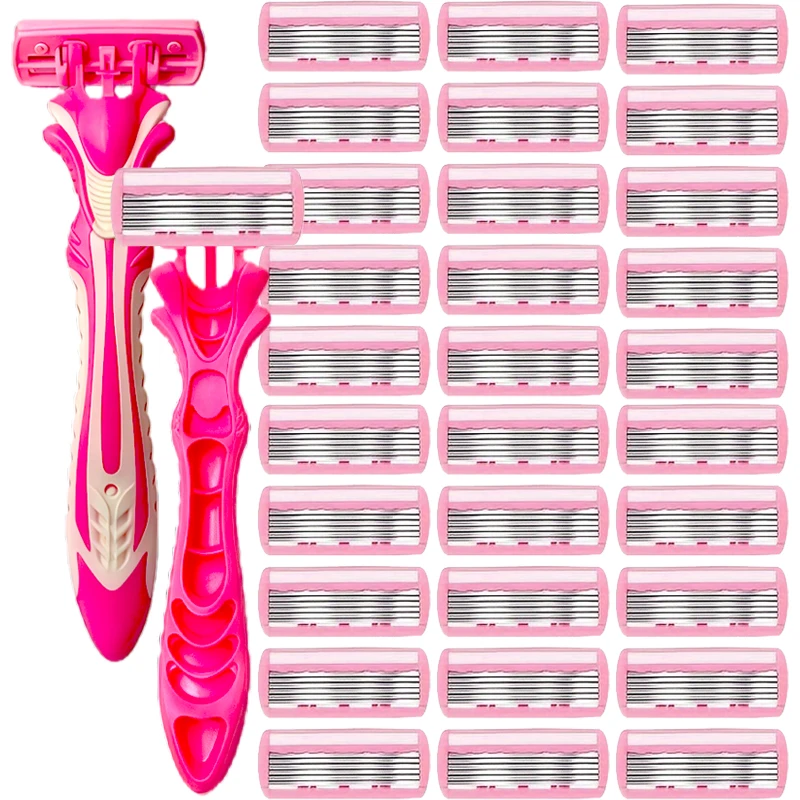 Safety Razor Blades Women Beauty Bikini Hair Removal Shaving Blades Set Shaver 6-Layer Replacement Heads